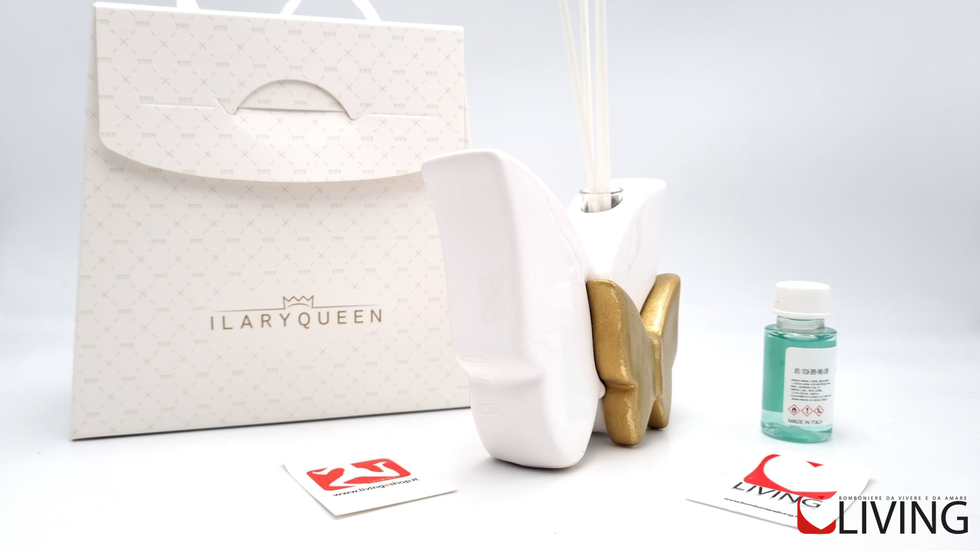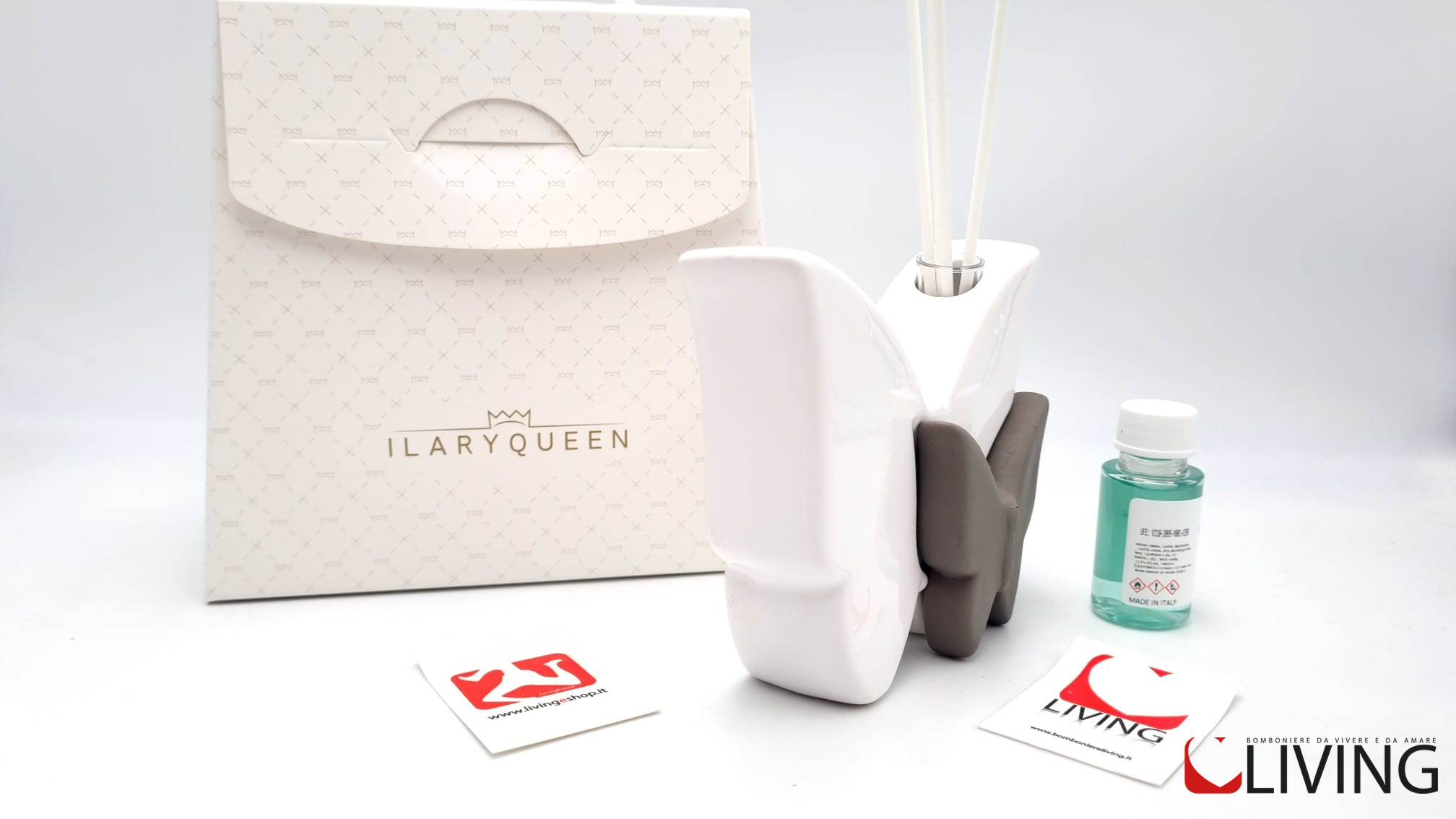 Per rendere l’esperienza ancora più elegante, la bomboniera è presentata in una scatola firmata Ilary Queen. L’incisione del marchio aggiunge un tocco di prestigio alla bomboniera ed è un segno di qualità e attenzione ai dettagli.