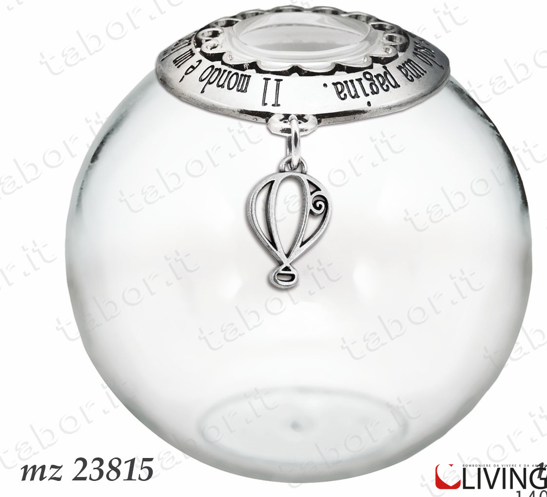 Profumatore sfera in vetro con decoro in metallo scritto ” il mondo è un libro e chi non viaggia ne legge solo una pagina. ” ciondolo in metallo mongolfiera. Il profumatore arriva compreso di scatola, stecchette e profumo. Il ciondolo è rivestito con particolare materiale che non si sporca, non si ossida e non si usura.