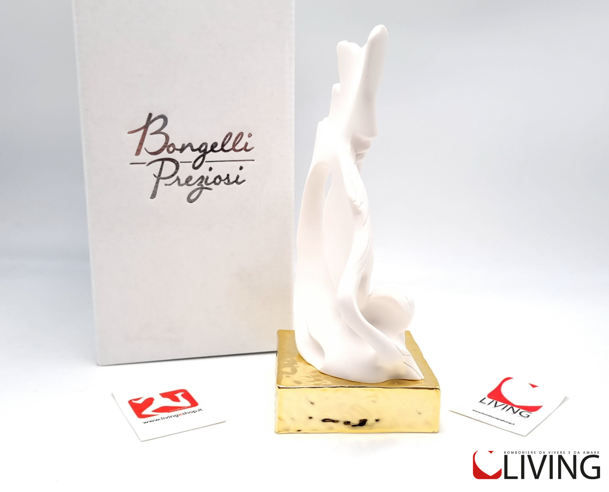 La bomboniera è accompagnata da una scatola firmata Bongelli Preziosi, che aggiunge un tocco di prestigio e rende il regalo facilmente presentabile.