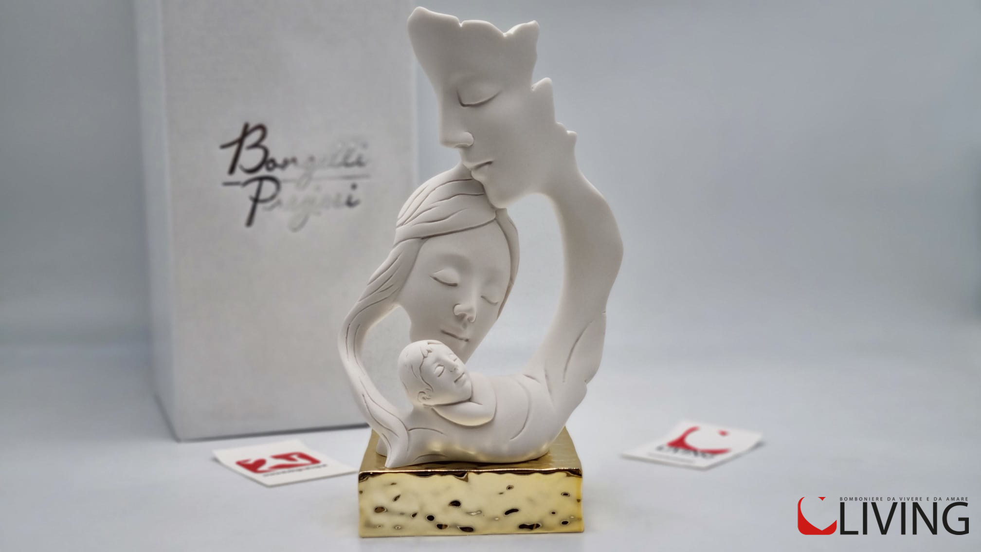 La bomboniera proposta dalla Bongelli Preziosi è una statua che rappresenta una famiglia composta da un marito, una moglie e un figlio sopra una base oro. L’oro è un materiale prezioso e duraturo che aggiunge un valore intrinseco alla bomboniera. La statua è realizzata con grande attenzione ai dettagli, catturando l’amore e l’unità di una famiglia.