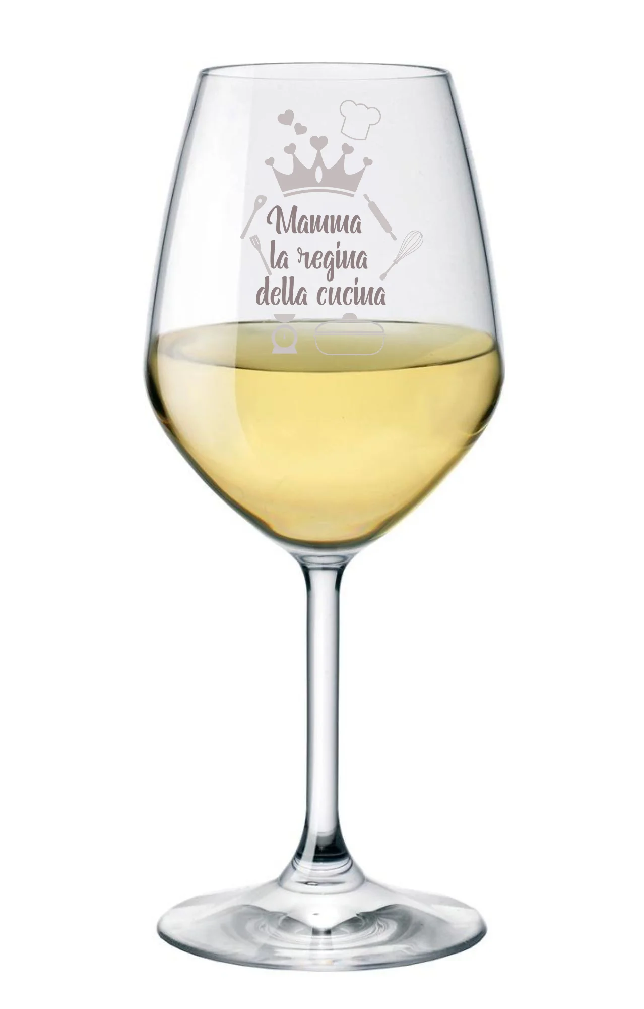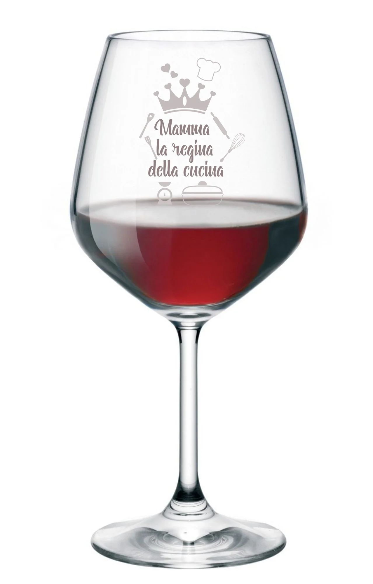 Calice di vino con incisione Mamma – mamma la regina della cucina – festa della mamma – evento – idea regalo – bicchiere in vetro chiaro, capienza 500 ml