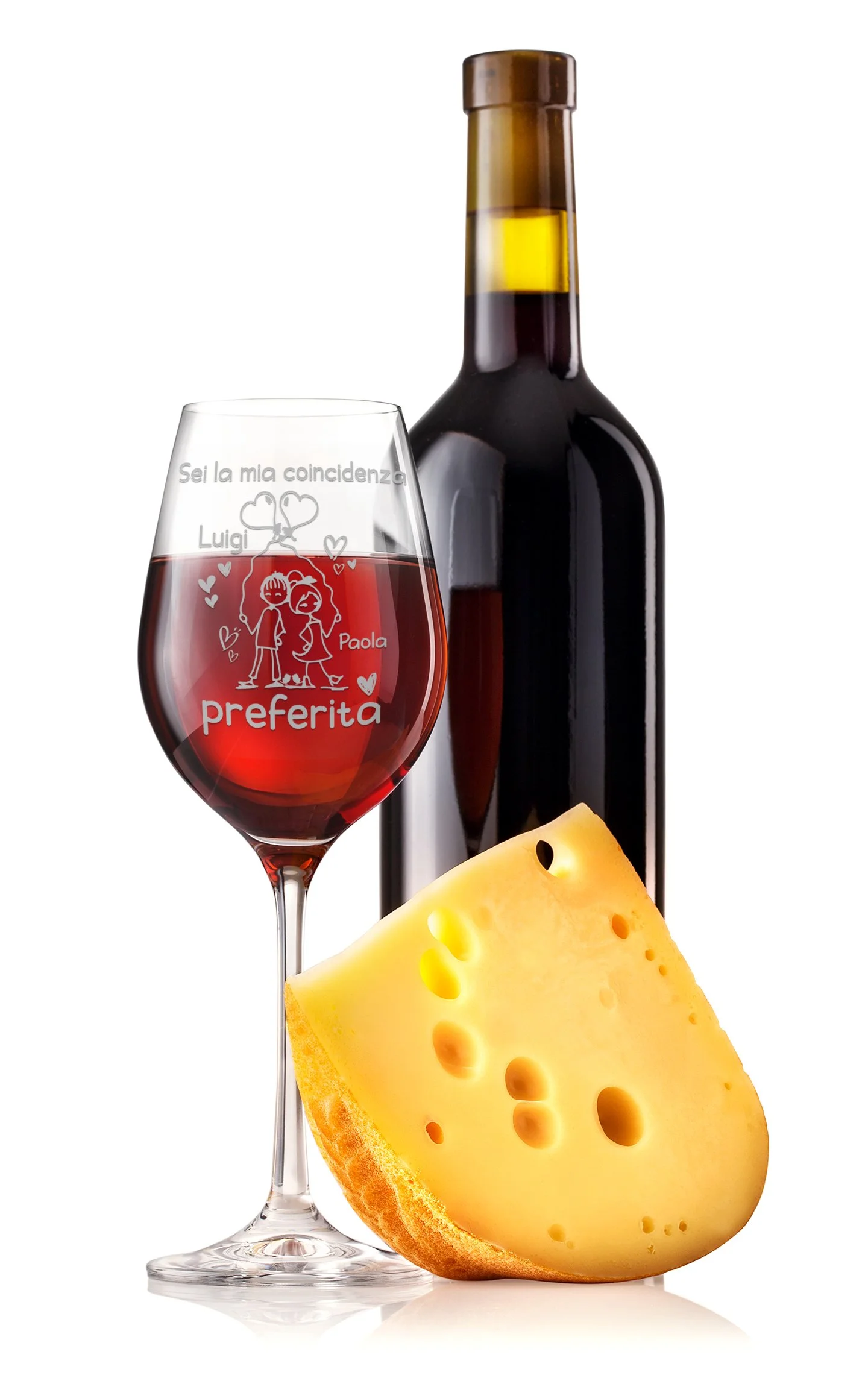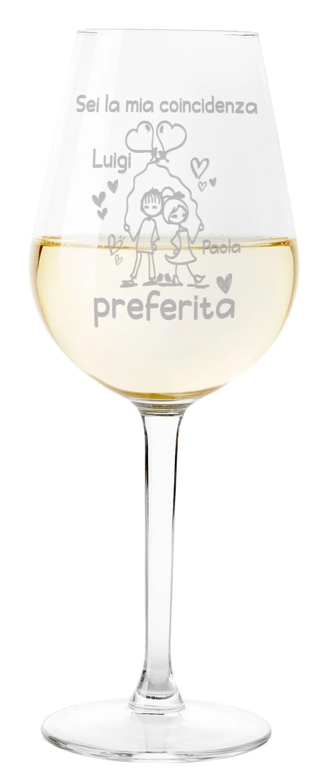 Calice Personalizzato SanValentino Vino Sei la mia coincidenza preferita Matrimonio Fidanzamento Amore Auguri 500 ml