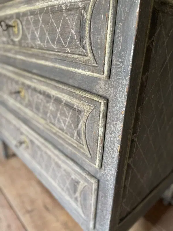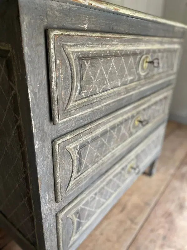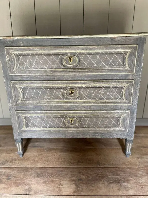 Magnifique petite commode Louis XVI à 3 tiroirs datant du 19ème siècle en parfait état, belle patine de plusieurs couleurs et très décorative. Tous nos prix sont négociables.