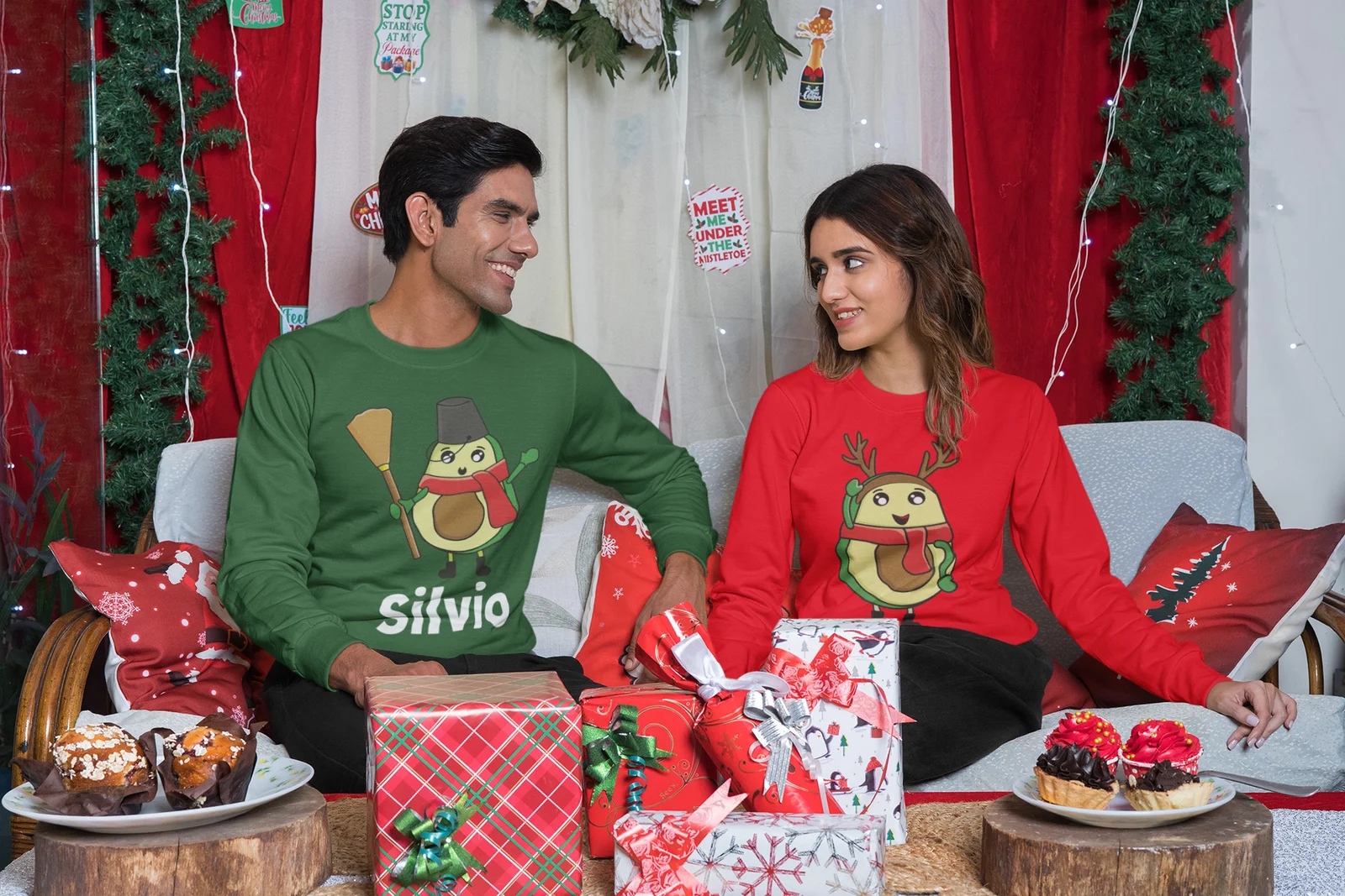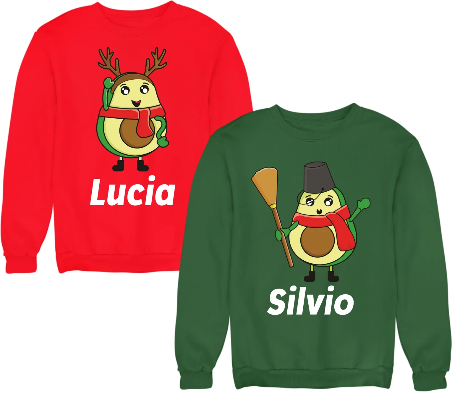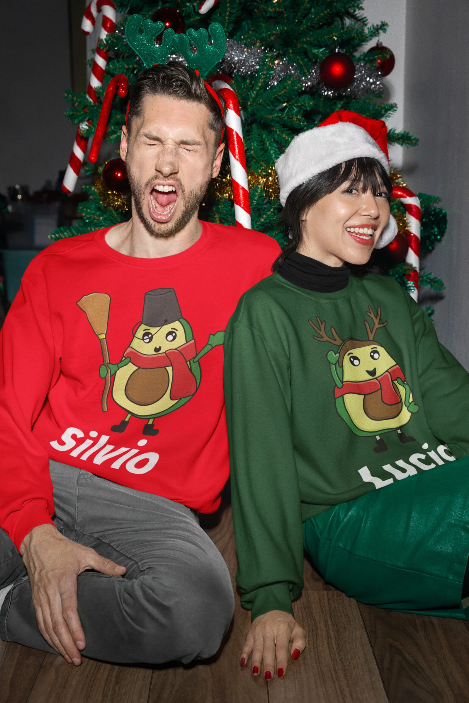 Coppia di Felpe Natale Girocollo PERSONALIZZABILI CON NOME Avocado Scopa divertenti idea regalo natale Unisex