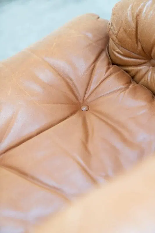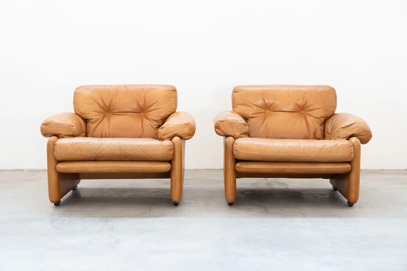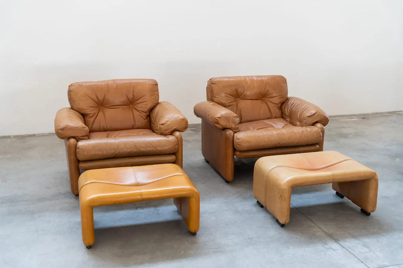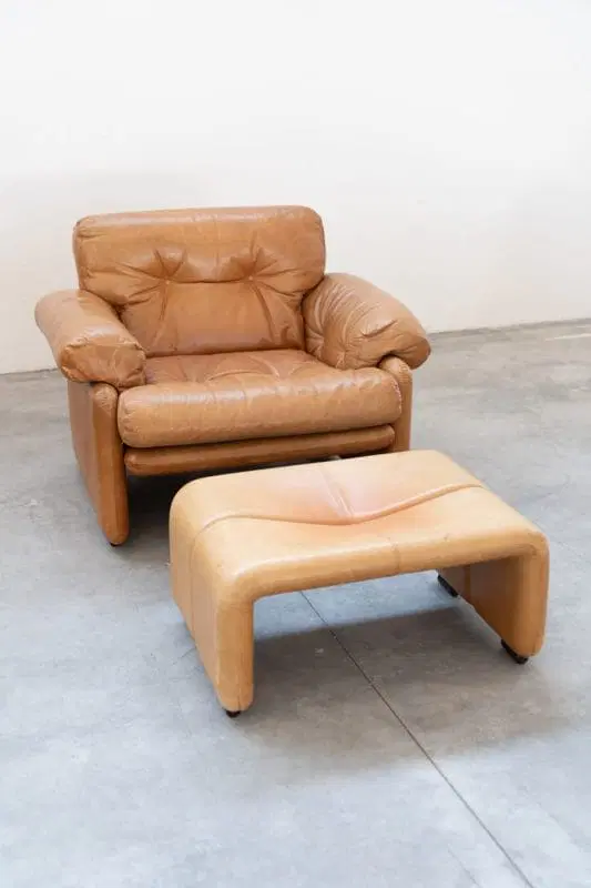 Coppia di poltrone con pouf color cognac modello”Coronado” di Afra & Tobia scarpa per B&B Italia,70
