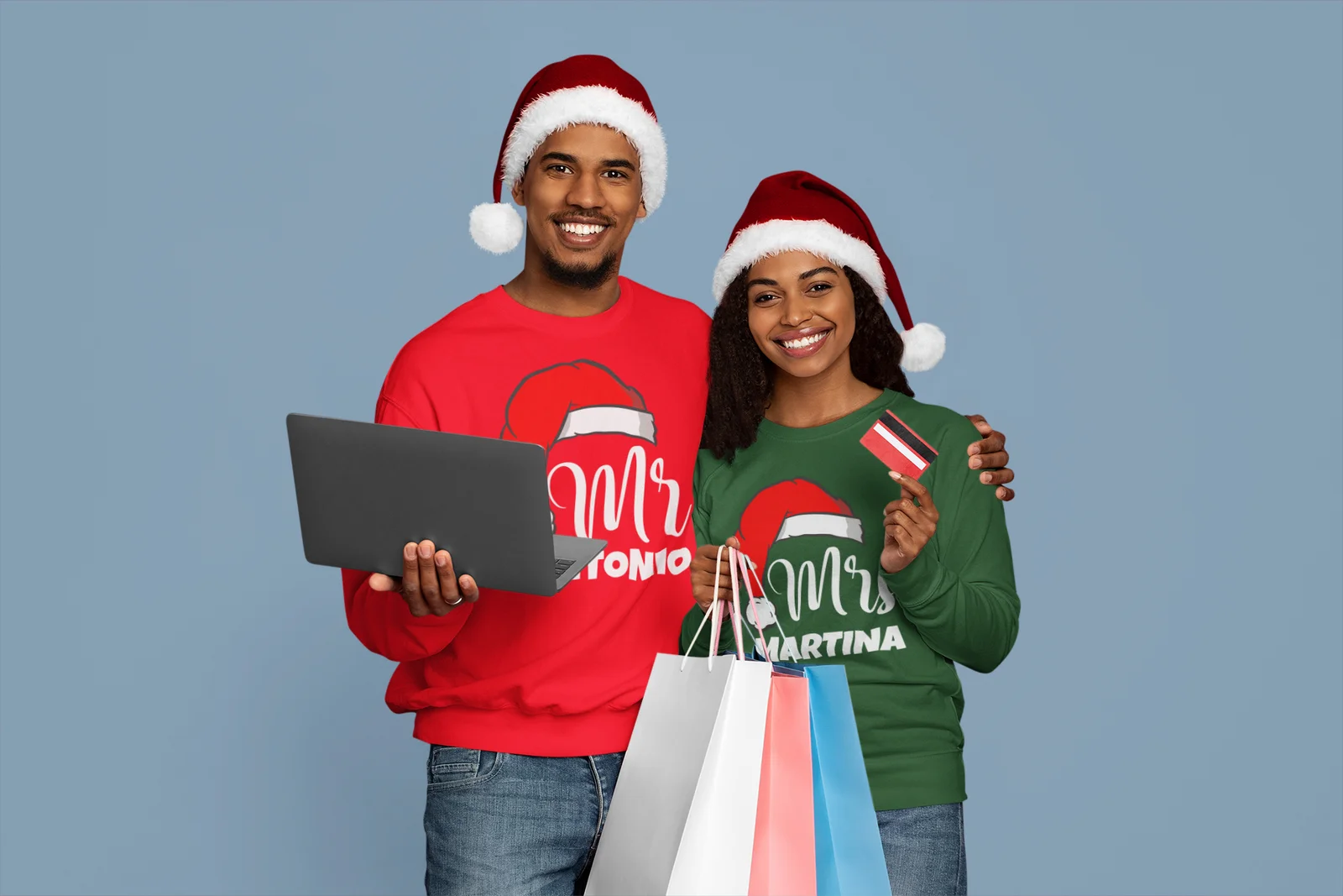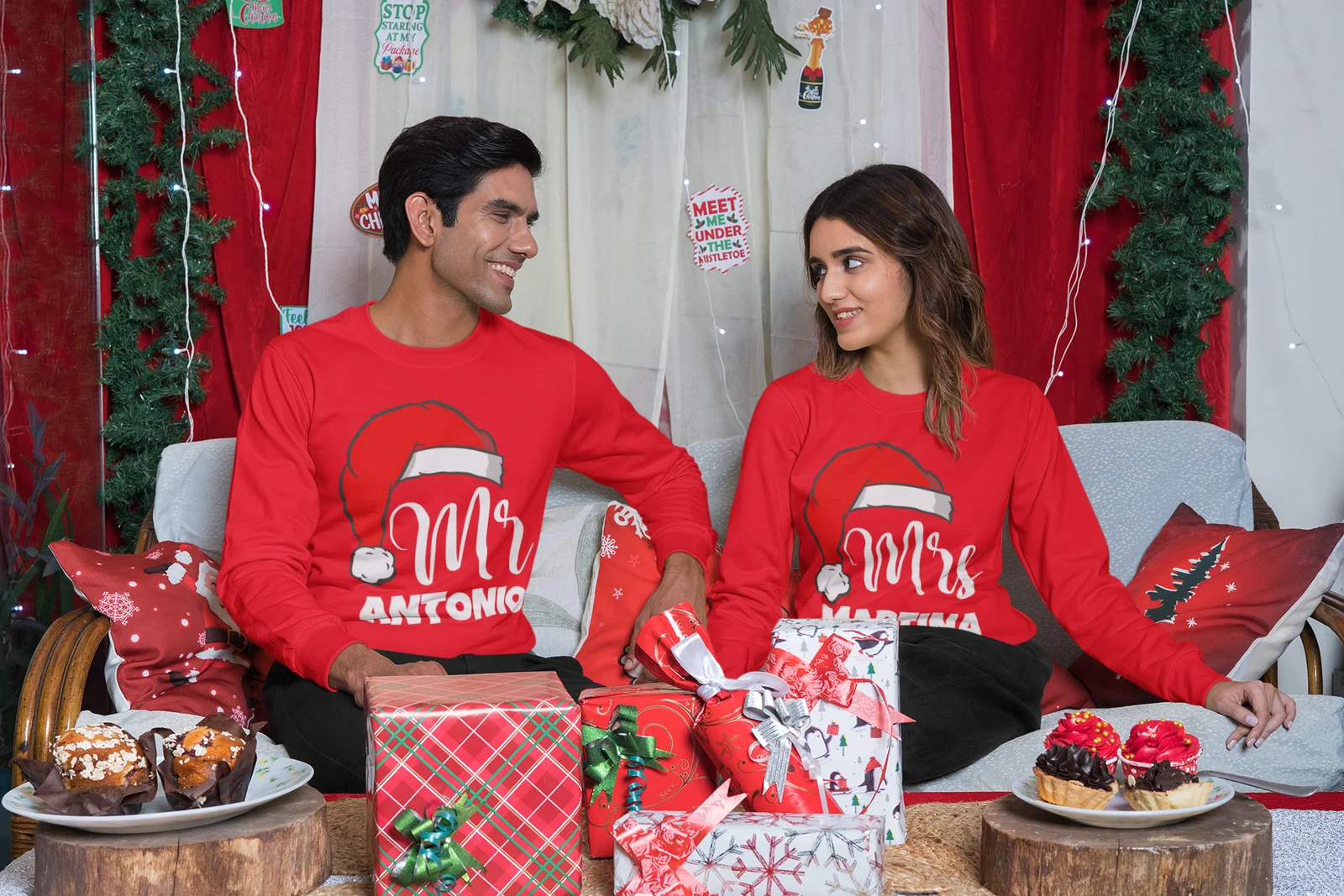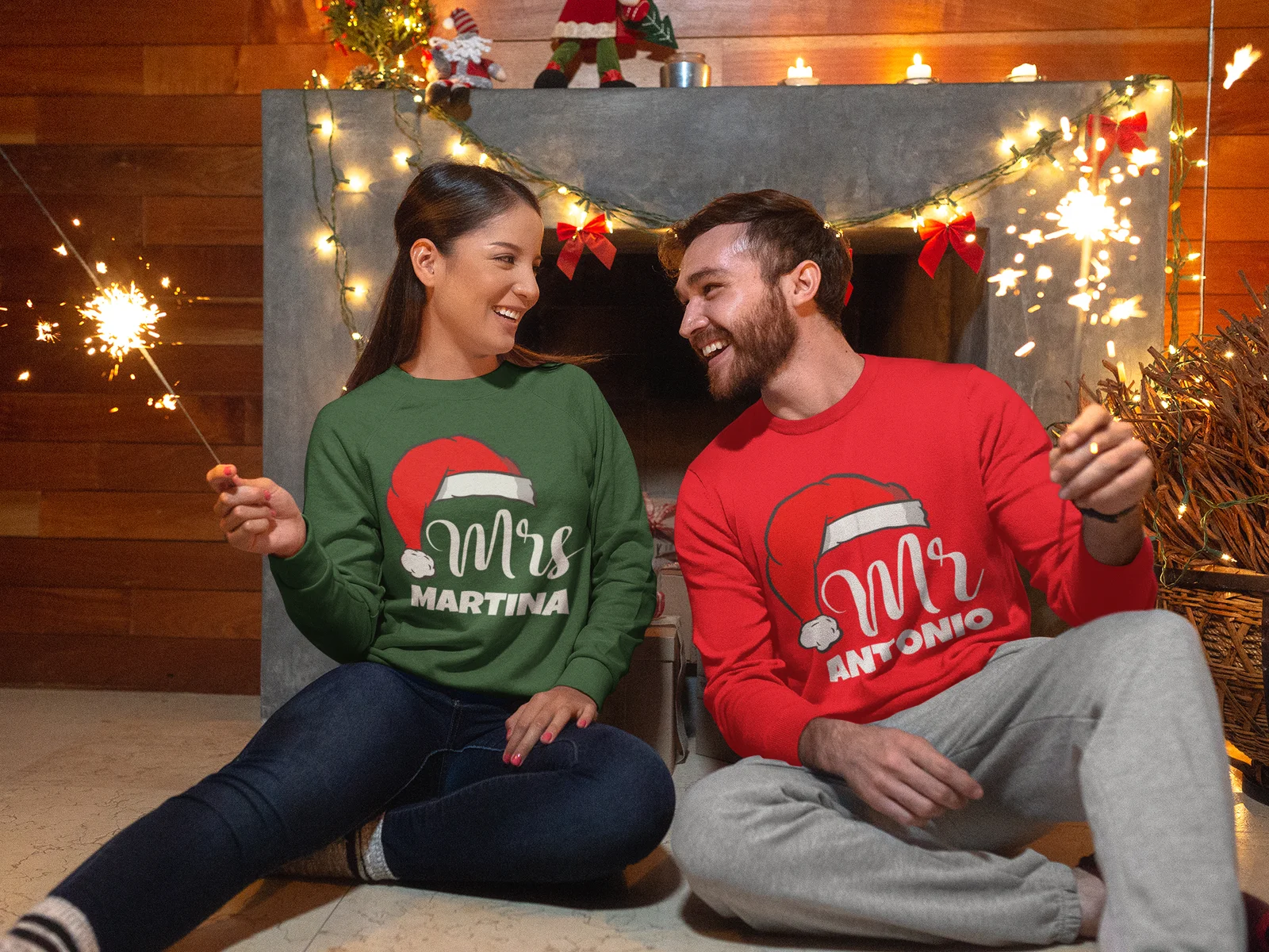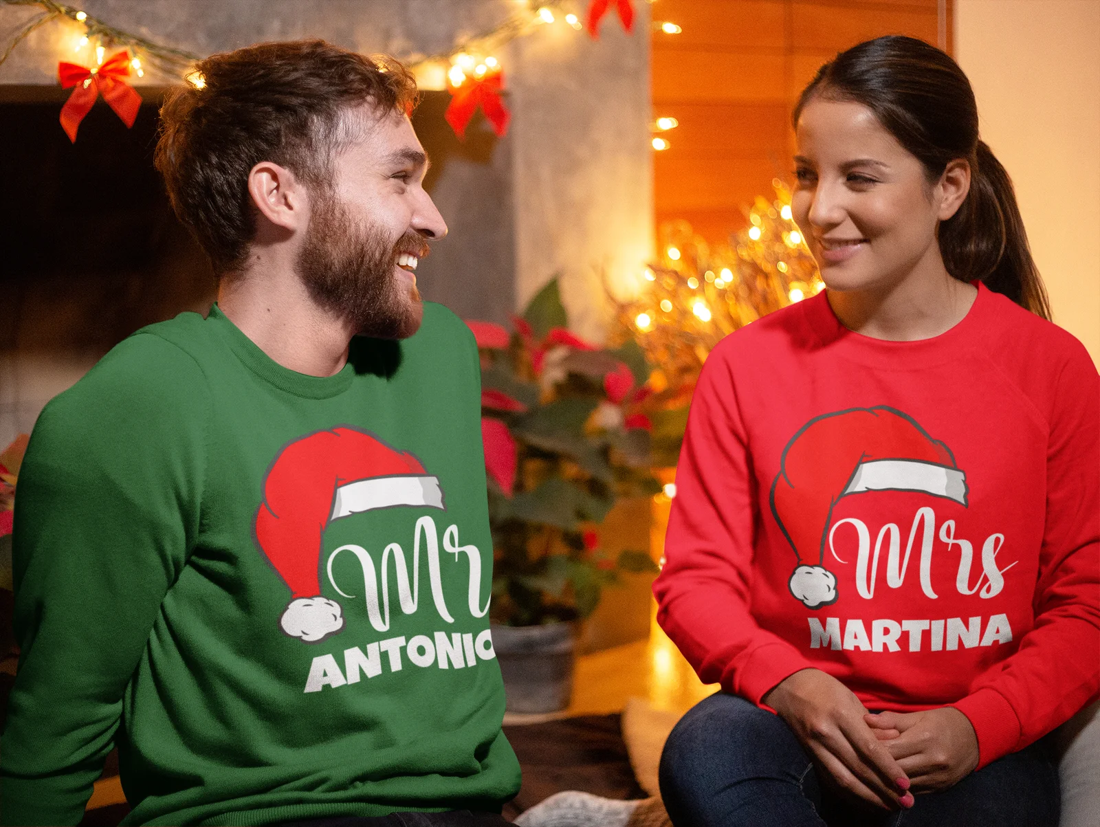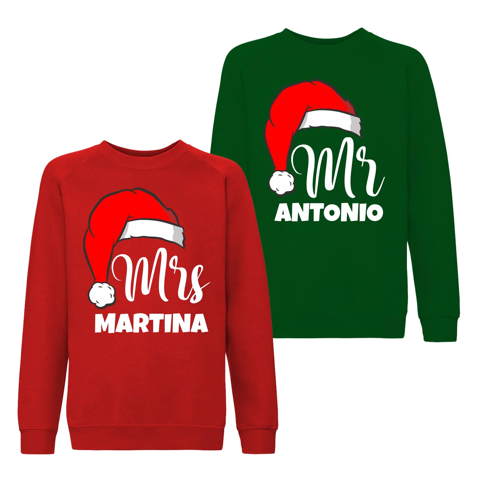 Coppia Felpe Natale Girocollo Natalizie PERSONALIZZABILI con nome Mr & Mrs personalizzata idea regalo Unisex