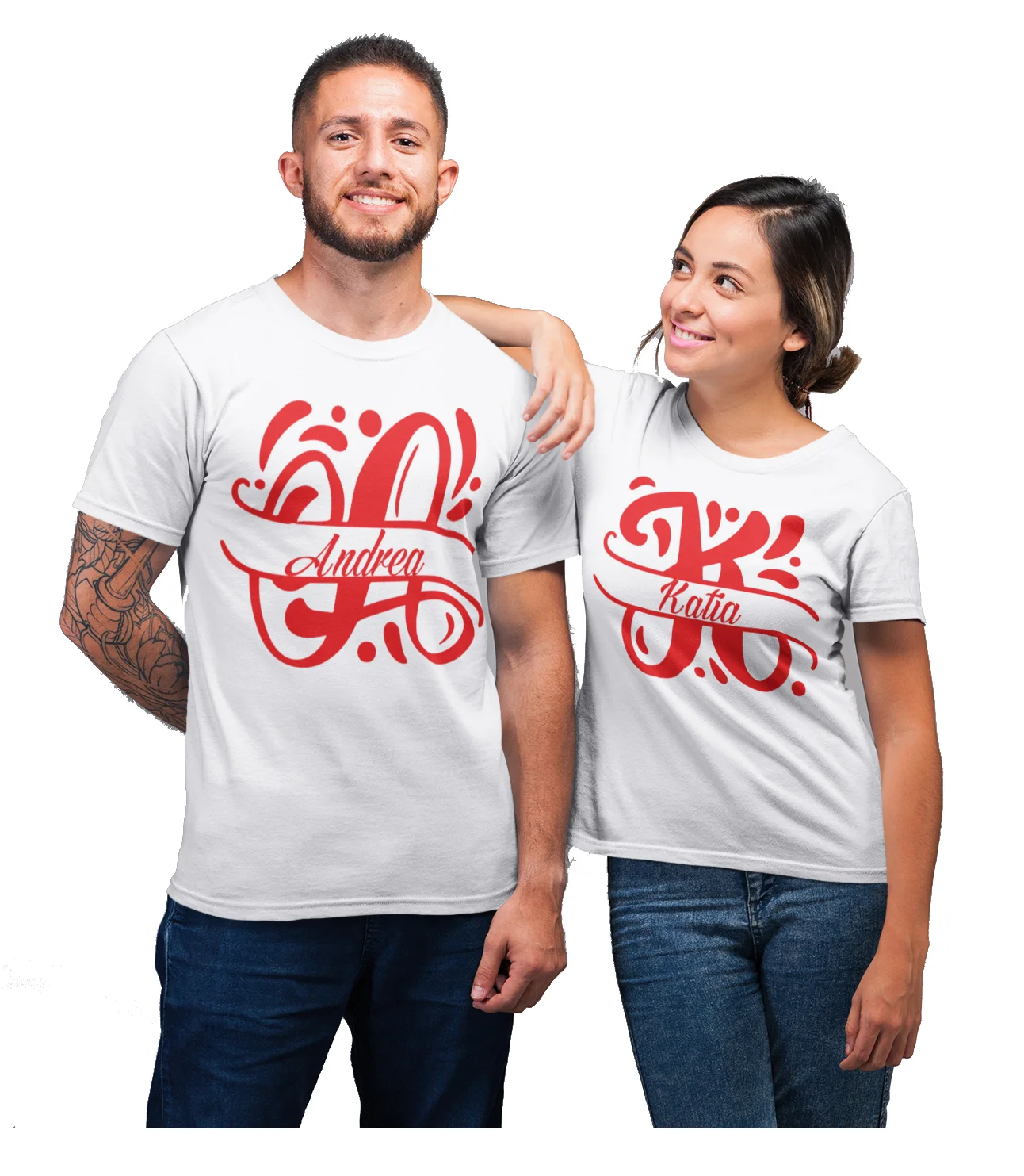 ISTRUZIONI PER L’ACQUISTO: Clicca sul tasto “Personalizza”, seleziona le taglie delle due t-shirt, inserisci i nomi da personalizzare, infine aggiungi al carrello e porta a termine l’acquisto.
