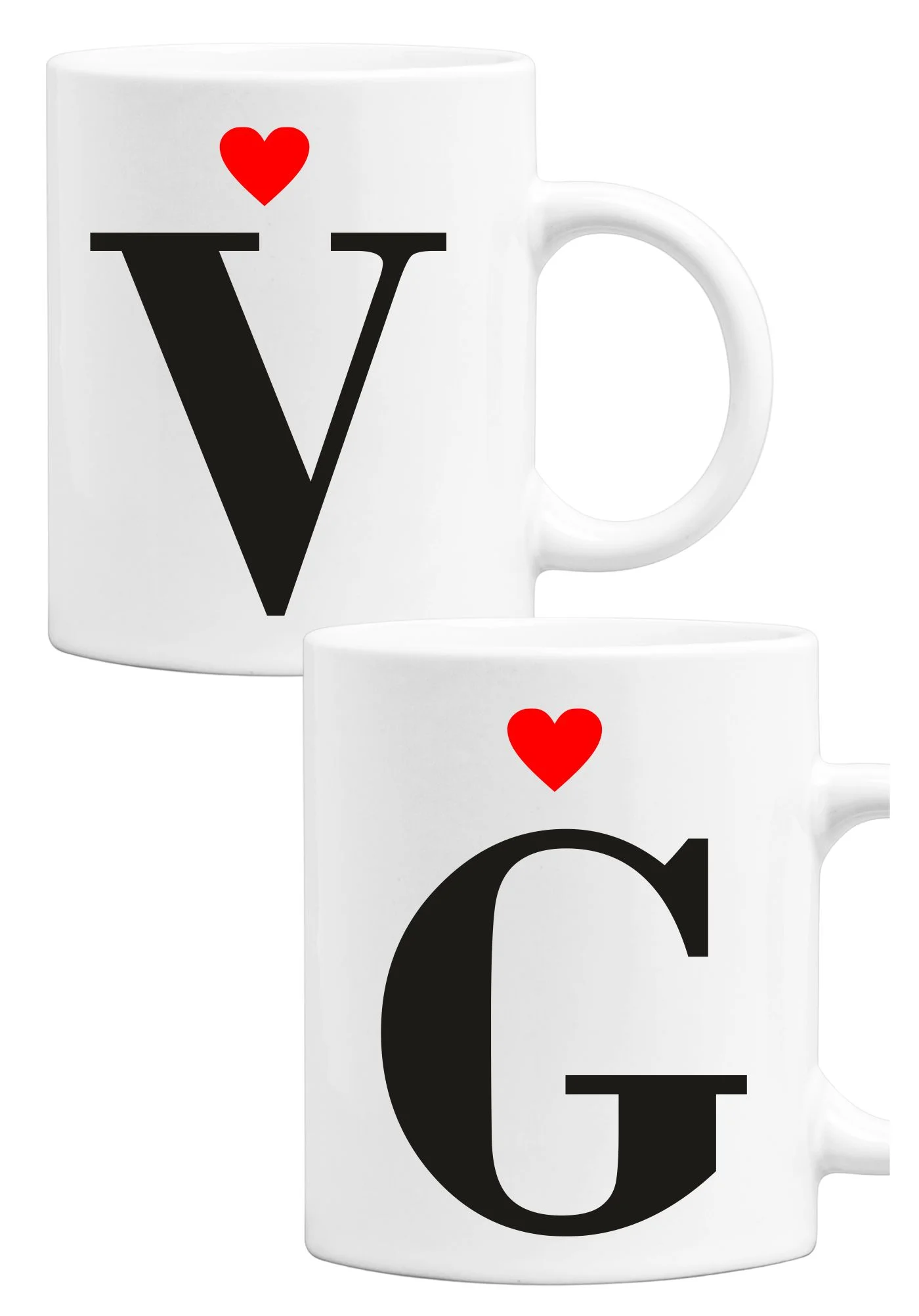 Coppia Tazze Mug Sanvalentino Personalizzabile Iniziale Personalizza con Iniziale Amore Innamorati Fidanzati Regalo Lui e Lei