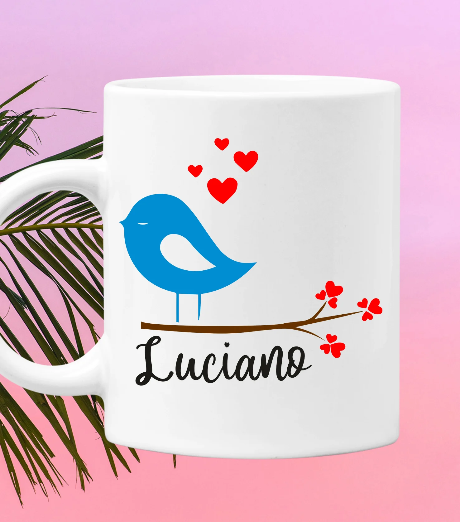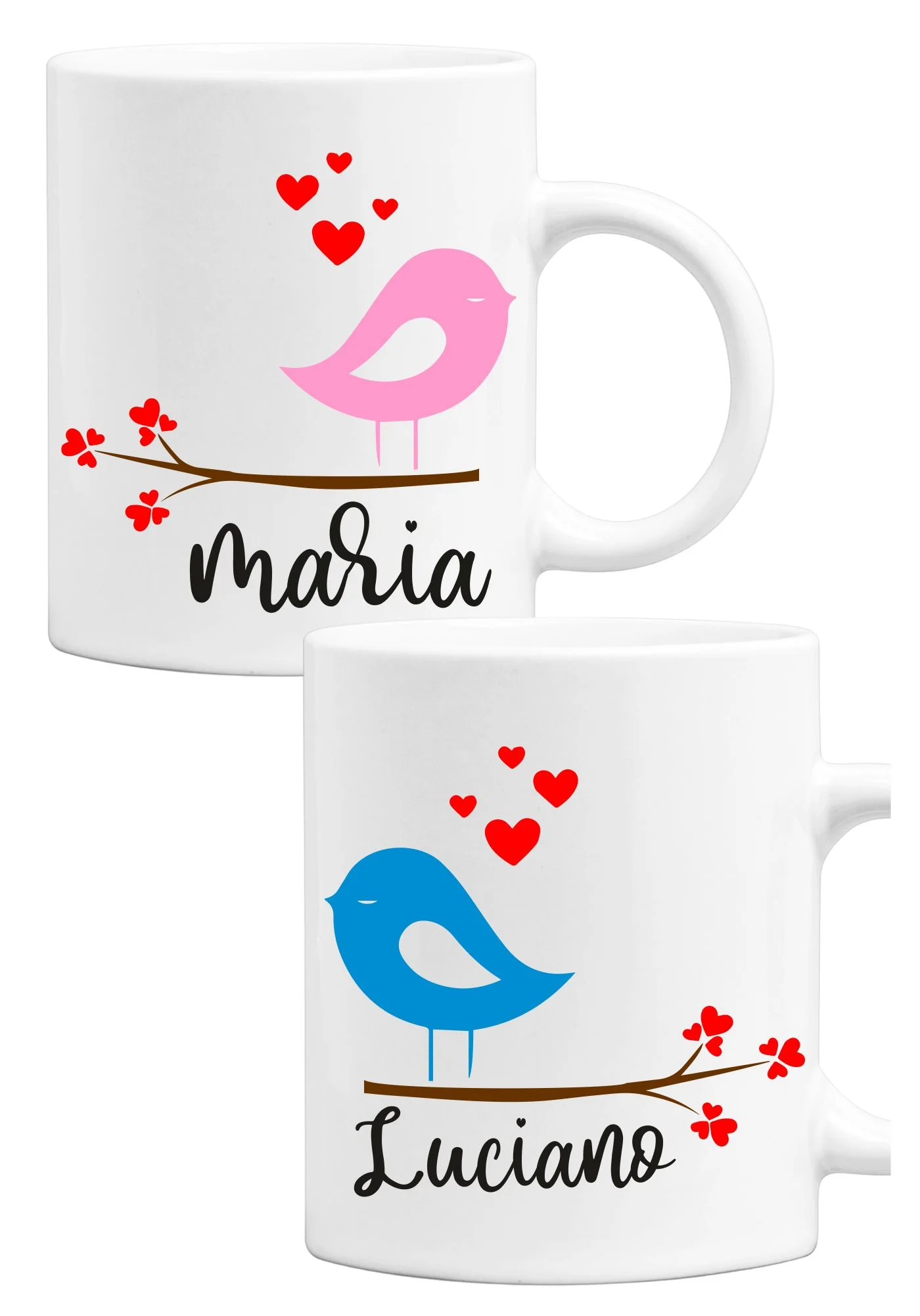 Coppia Tazze Mug Sanvalentino Personalizzabile Uccellini Personalizza con nome Amore Innamorati Fidanzati Regalo Lui e Lei