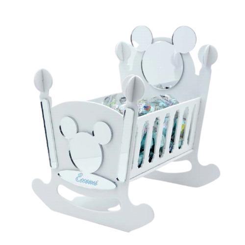 Culletta portaconfetti in plexiglass con sagoma di Topolino e scritta azzurra personalizzabile.