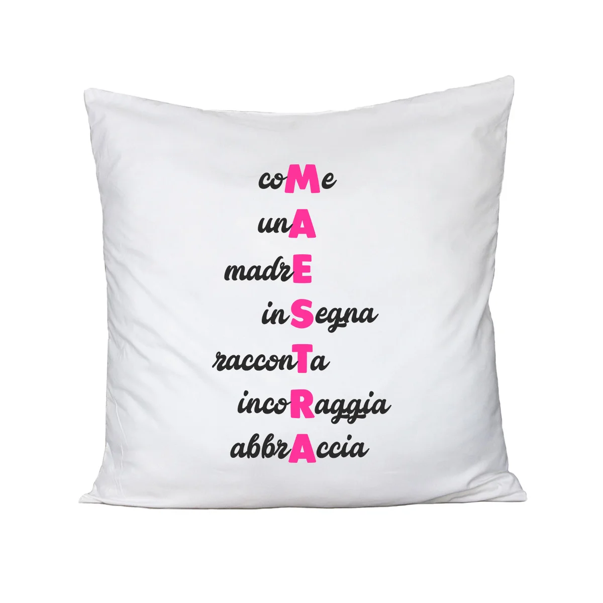 Cuscino Maestra – come una madre insegna, racconta, incoraggia abbraccia – idea regalo – dimensioni 40×40 cm