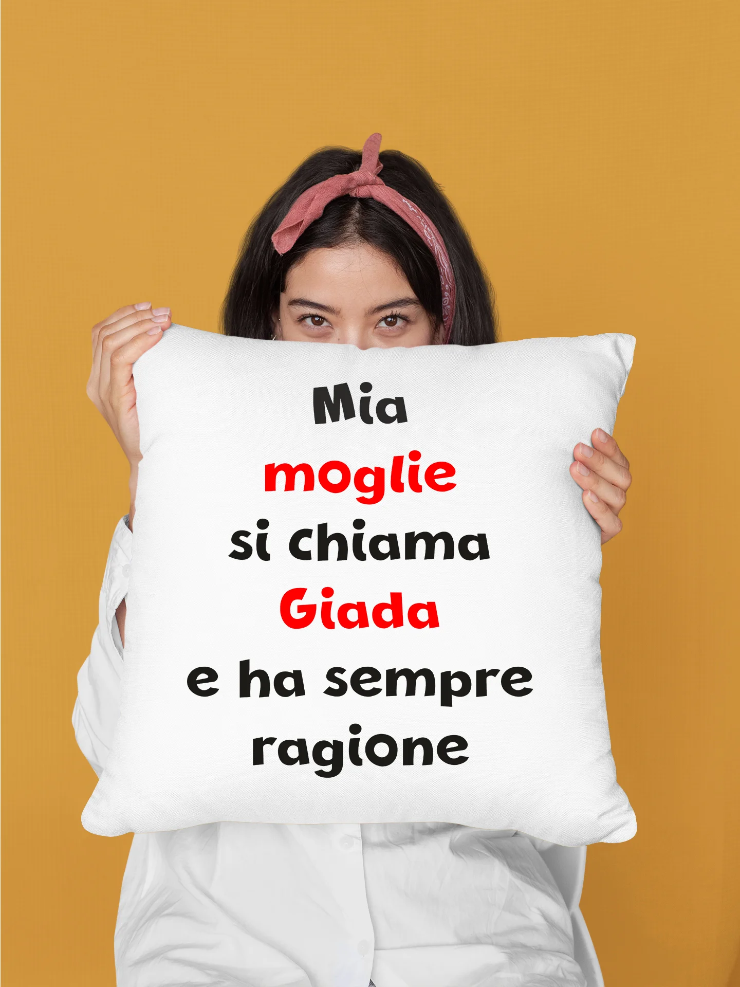 Cuscino SanValentino Regalo Fidanzati Innamorati divertenti PERSONALIZZA CON NOME Mia moglie ha sempre ragione