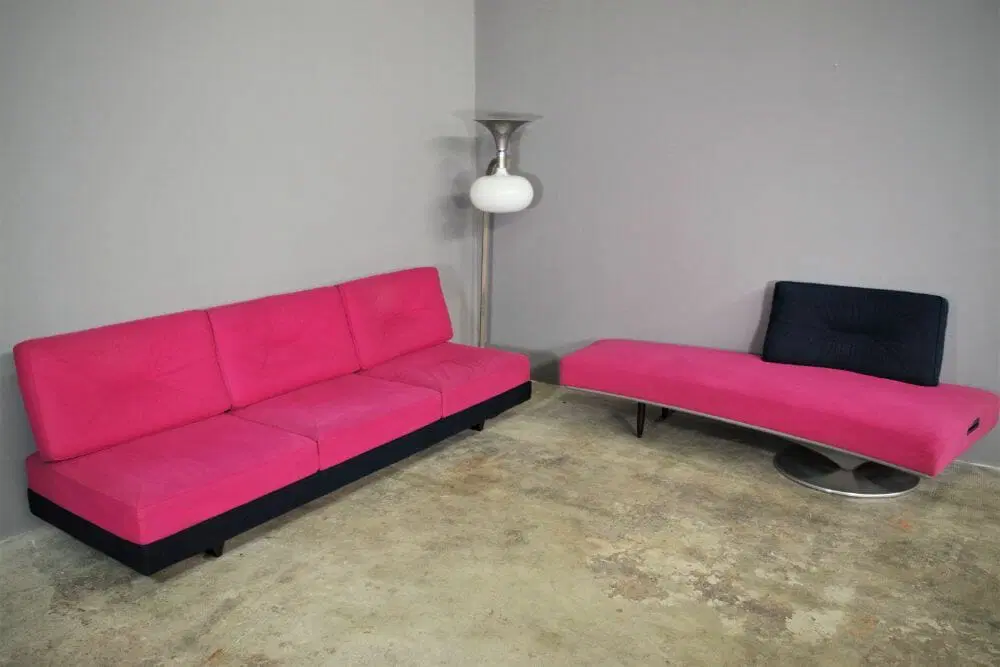 Questo pezzo ha un marchio di attribuzione, sono sicuro che è completamente autentico e mi assumo la piena responsabilità per qualsiasi problema di autenticità derivante da una errata attribuzione. Divani Saporiti smontabile in 12 pezzi, in tessuto alcantara colorato, struttura in polipropilene, ganci in ferro e piedini in polipropilene, schienale rimovibile, schienale intercambiabile, anni ’80. L’oggetto vintage è completamente funzionante ma presenta segni di usura come graffi, ammaccature, difetti del materiale e riparazioni. Leggera usura dovuta all’età e all’utilizzo