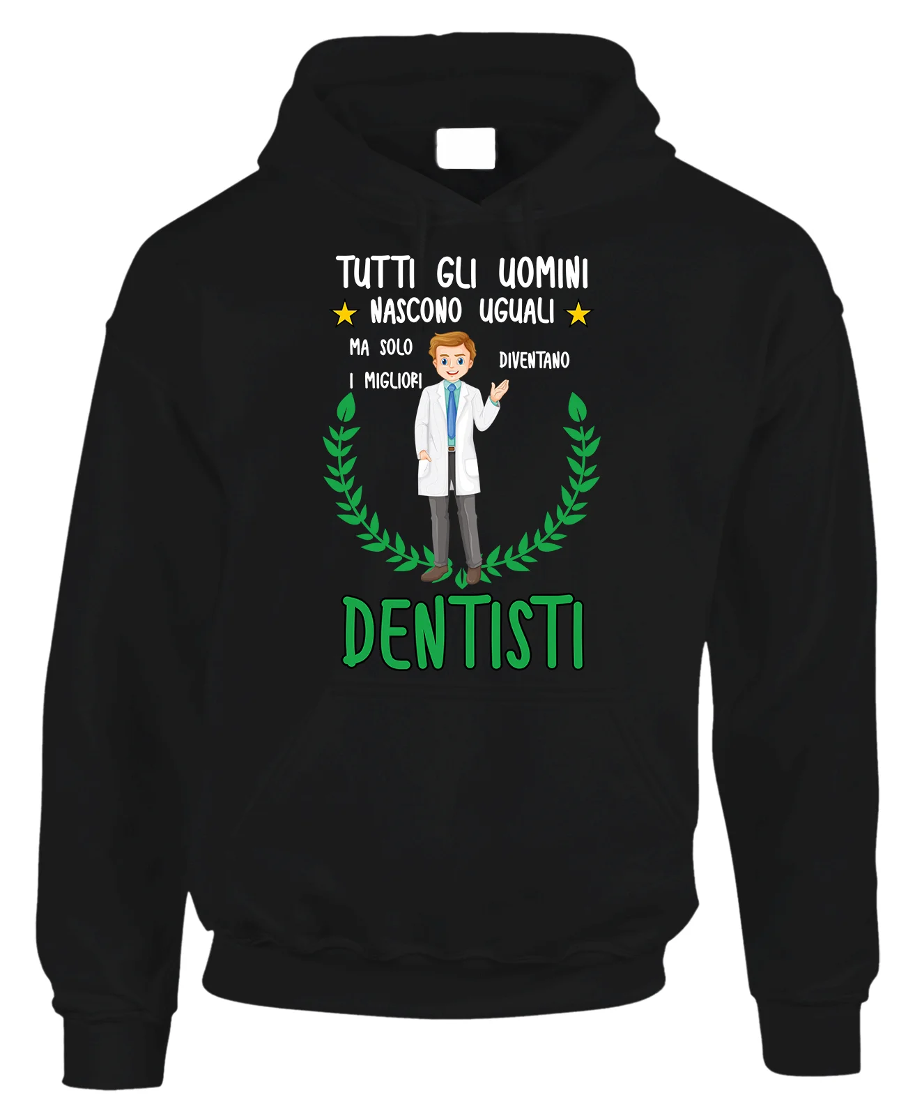 Felpa con cappuccio e tascone frontale con una stampa simpatica creata per fare un regalo al Dentista