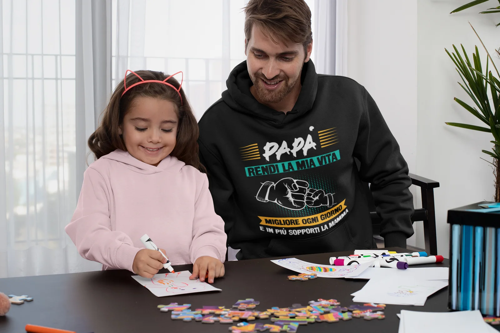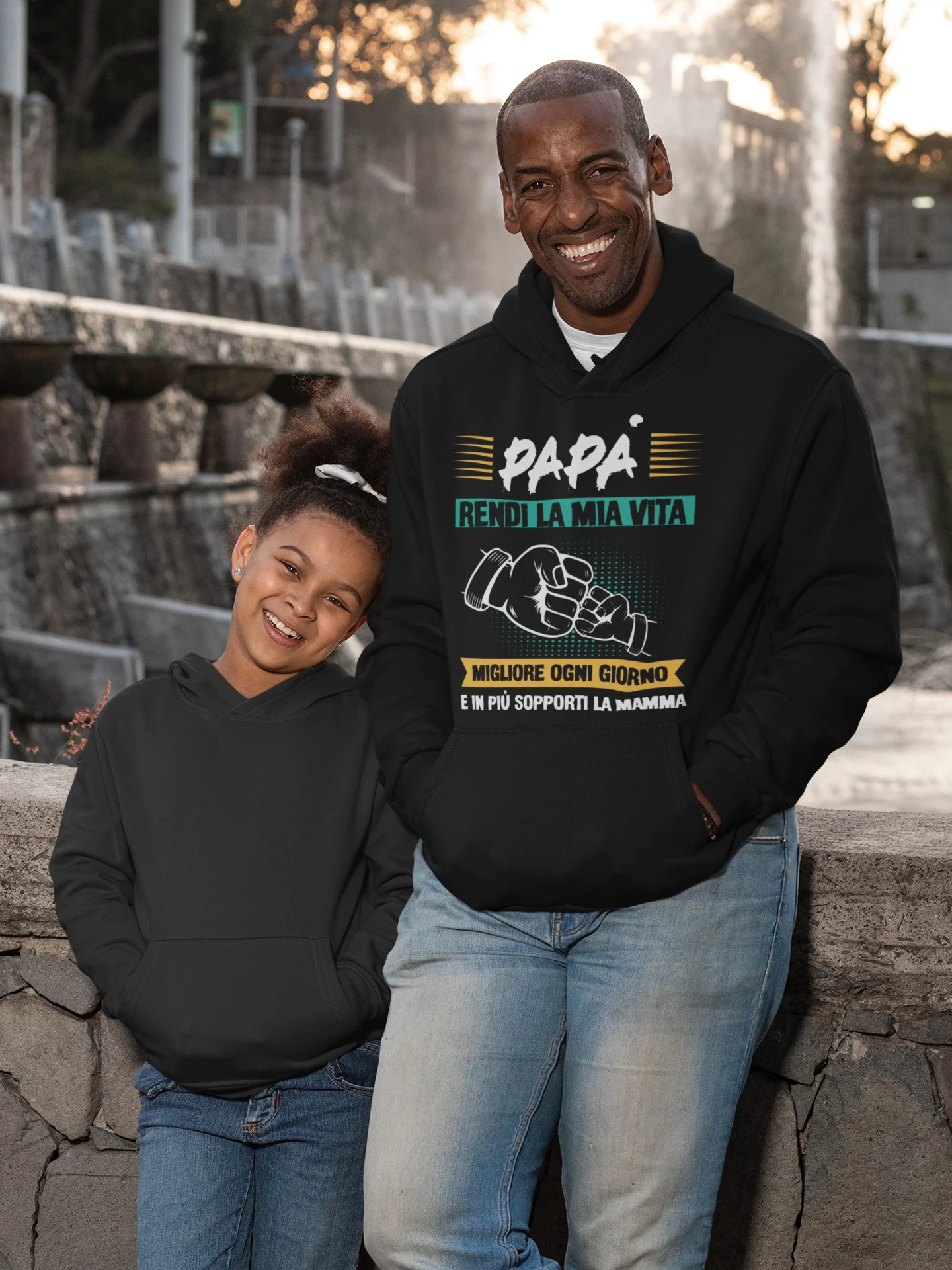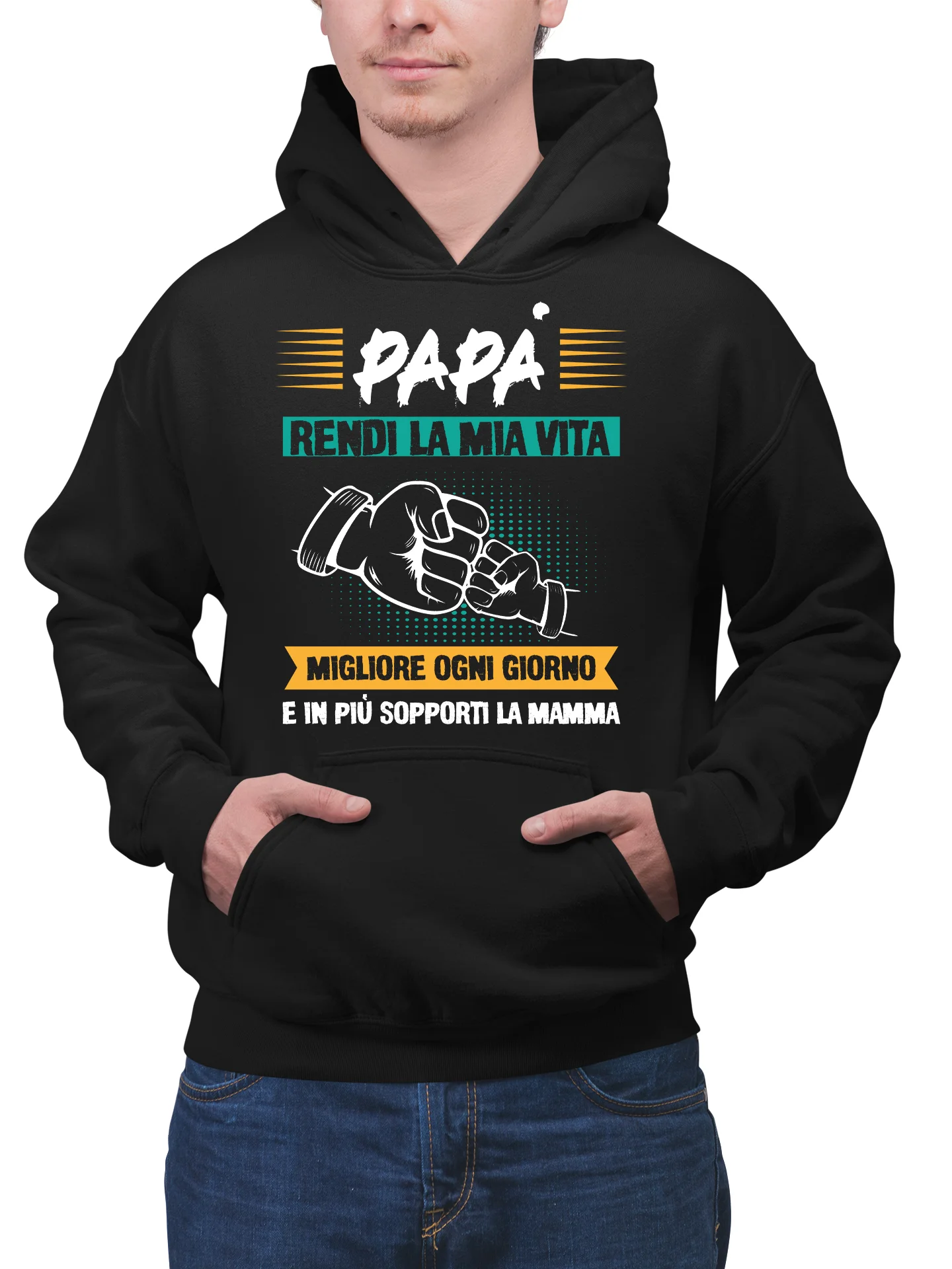 Felpa Papà con cappuccio Festa del Papà Rendi la mia vita migliore ogni giorno e in più sopporti la Mamma regalo papà