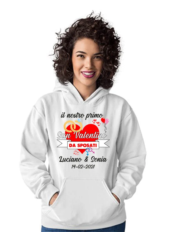 Felpa PERSONALIZZABILE SanValentino Regalo Fidanzati Innamorati Divertenti il nostro primo SanValentino da sposati