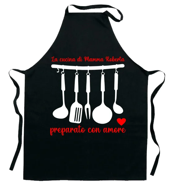 Grembiule da Cucina Mamma Personalizzabile con Nome Divertenti La Cucina di Mamma Preparato con Amore Idea Regalo