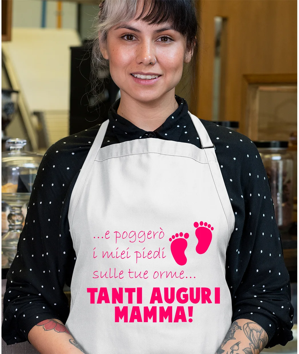 Grembiule da cucina Mamma Regalo Poggerò i piedi sulle tue orme Tanti Auguri Mamma Idea Regalo taglia Unica