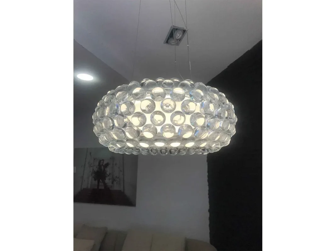 Lampada a sospensione che trasforma la luce in una scintillante composizione di sfere trasparenti. Adatta in ambienti giorno notte. Lampadina non inclusa.