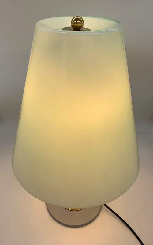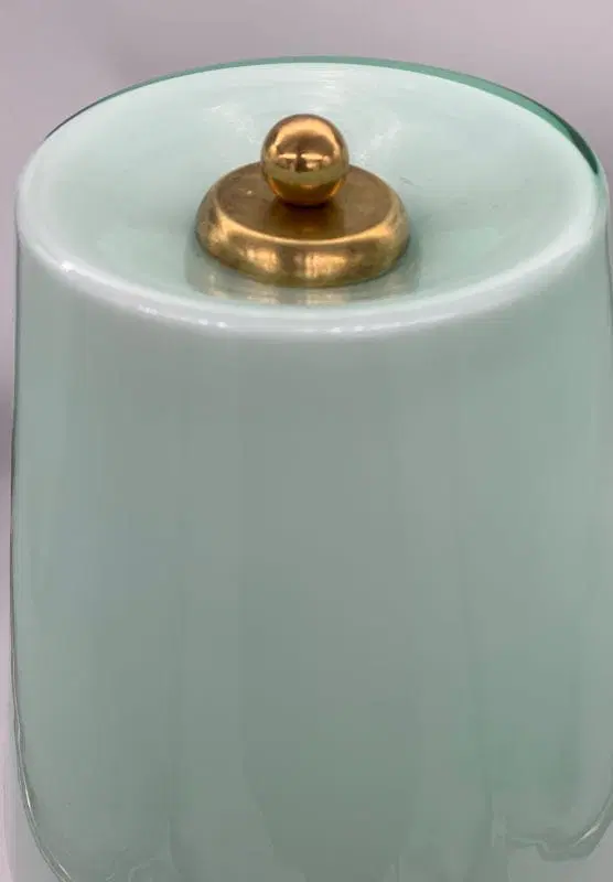 Il vetro di color verde chiaro è di Murano è stato eseguito a mano su stampo.