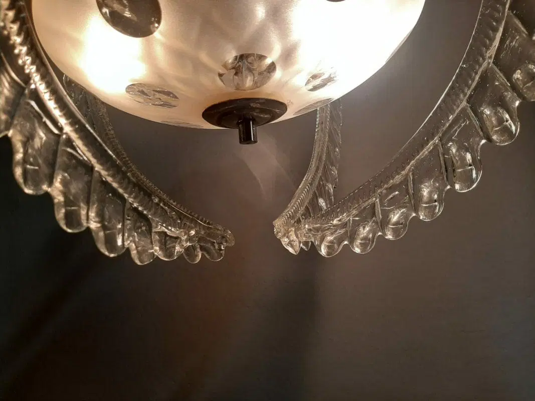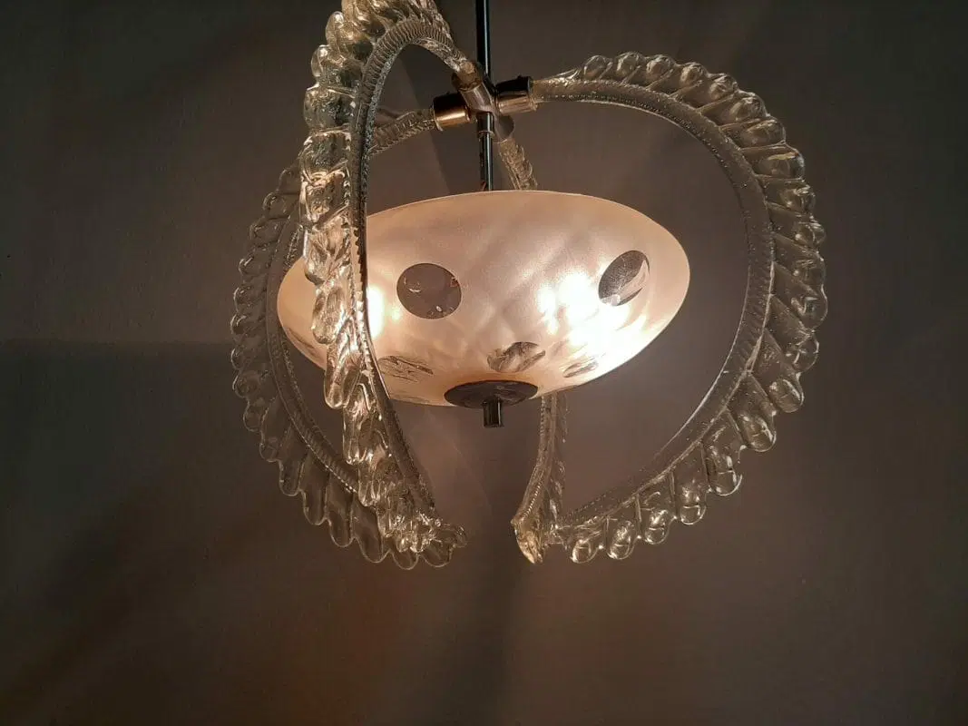Lampadario stile Barovier e Toso in vetro di Murano; anni ’30-’40 (funzionante), impianto elettrico originale.