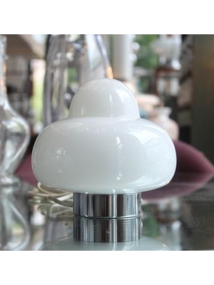 Perfette come luci da comodino, sanno creare quell’atmosfera ovattata e un po’ onirica che accompagna i sogni più dolci. Ma anche su una libreria, accese al calare del sole, diventano piccole presenze luminose che arredano con discrezione e carattere. Il basamento in metallo cromato aggiunge un tocco deciso, quasi futurista, a un design che resta dolcemente sospeso nel tempo.