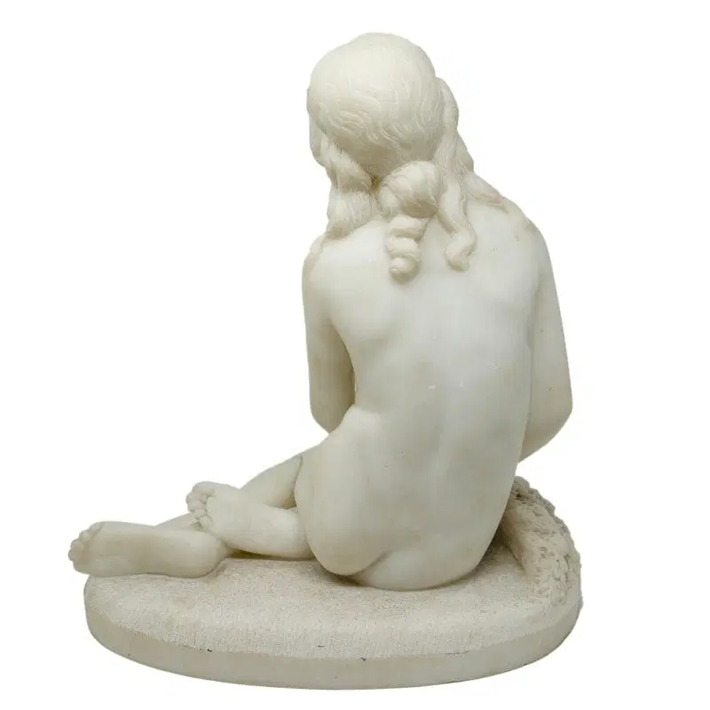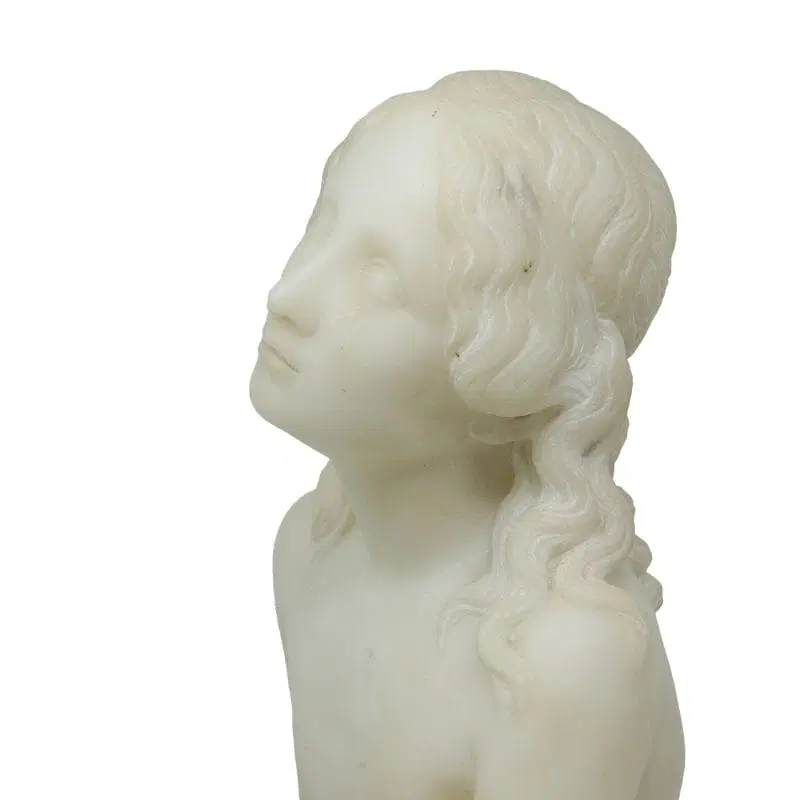 L’opera in esame, una graziosa fanciulla in marmo bianco distesa con le mani giunte in segno di contemplazione, è da annoverare nel vasto corpus artistico dello scultore fiorentino Luigi Pampaloni (Firenze, 1791 – 1847), soprannominato l’”Anacreonte della scultura” per via dell’estrema duttilità dimostrata nel saper alternare un registro grave e severo, più appropriato a uno stile monumentale, a quello leggiadro e gentile, confacente a soggetti di minor impegno.
