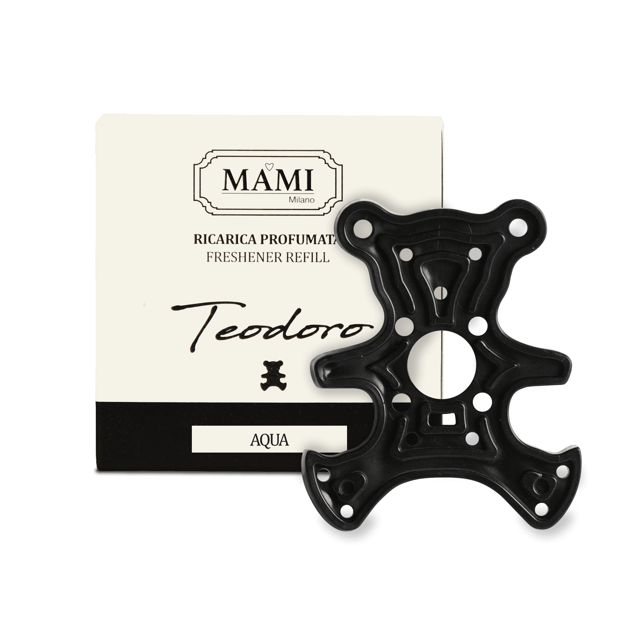 Teodoro, da “Teddy bear”, è un simpatico diffusore di fragranze a forma di orsetto, una presenza giocosa e simpatica, in grado di tenere compagnia e rallegrare l’abitacolo con stile.