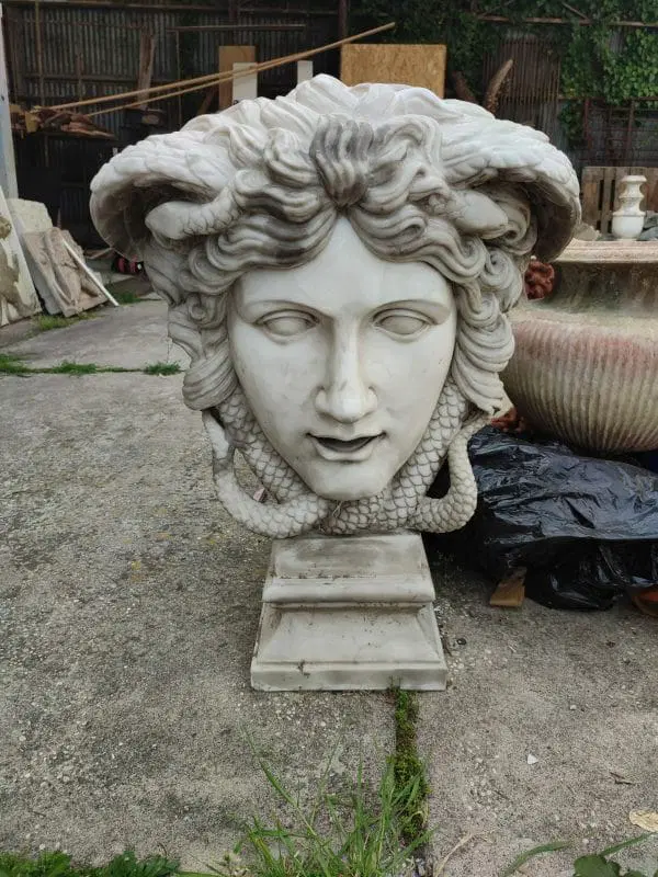 Mezzo busto ( Medusa) in marmo statuario. 78x60x28 cm