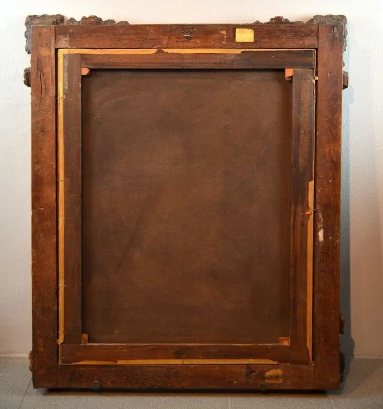 La tela è infine arricchito da una piacevole cornice lagnea intagliata coeva