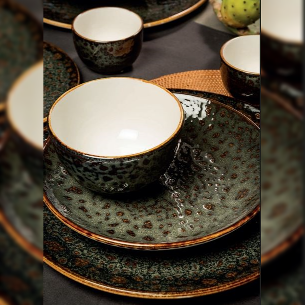 Il piatto fondo Skyfall da 23,5 cm della linea Skyfall di Table Top è un elemento distintivo per la tavola di ristoranti, catering e hotel. Realizzato in porcellana di alta qualità, questo piatto si caratterizza per il suo colore verde/nero reattivo, una tonalità moderna ed elegante che aggiunge un tocco di originalità alla presentazione dei piatti. Il bordo rinforzato, un dettaglio fondamentale per l’utilizzo professionale, assicura una maggiore resistenza agli urti e alle scheggiature, preservando l’integrità del piatto nel tempo. La smaltatura in vetrina spessa e resistente protegge la superficie da graffi e usura, mantenendo inalterata la sua bellezza anche dopo un uso intensivo. Perfetto per servire zuppe, minestre, primi piatti e altre pietanze che richiedono un piatto fondo, il piatto Skyfall da 23,5 cm combina funzionalità e design, offrendo ai professionisti del settore alberghiero un prodotto di alta qualità per valorizzare la propria offerta culinaria e soddisfare anche i clienti più esigenti.
