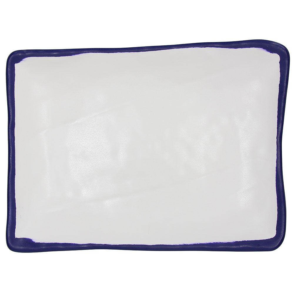 Il piatto rettangolare Show Plate Marina da 40×30 cm di Tognana Porcellane è un pezzo unico e versatile per la tua tavola. Realizzato in melamina di alta qualità, questo piatto è resistente agli urti e ai lavaggi frequenti, ideale per un uso quotidiano in ambienti professionali. La base bianca, abbinata alla bordatura blu e alle linee sinuose, crea un effetto artigianale e contemporaneo, perfetto per presentare le tue creazioni culinarie con stile. La linea Show Plate Marina è ideale per buffet, ristoranti e hotel che vogliono offrire un servizio di alta qualità senza rinunciare all’eleganza. Scegli Tognana Porcellane e porta in tavola un tocco di freschezza e originalità.