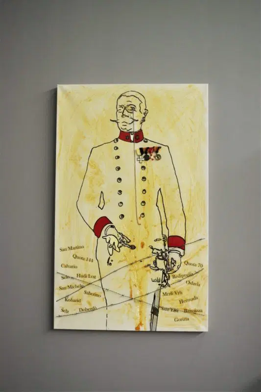 Quadro moderno Generale austriaco, su tela e con stipite in legno. E’ stato creato in occasione della Guerra sul Corso, degli anni 70/80. Sono riportate le località del corso triestino.
