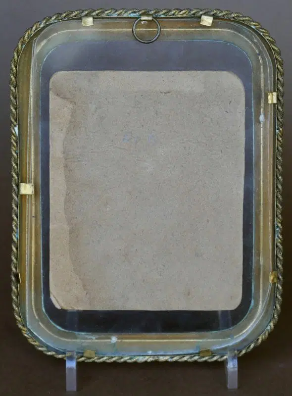 L’immagine è tra due vetri e incorniciata da una cornica d’ottone d’epoca.