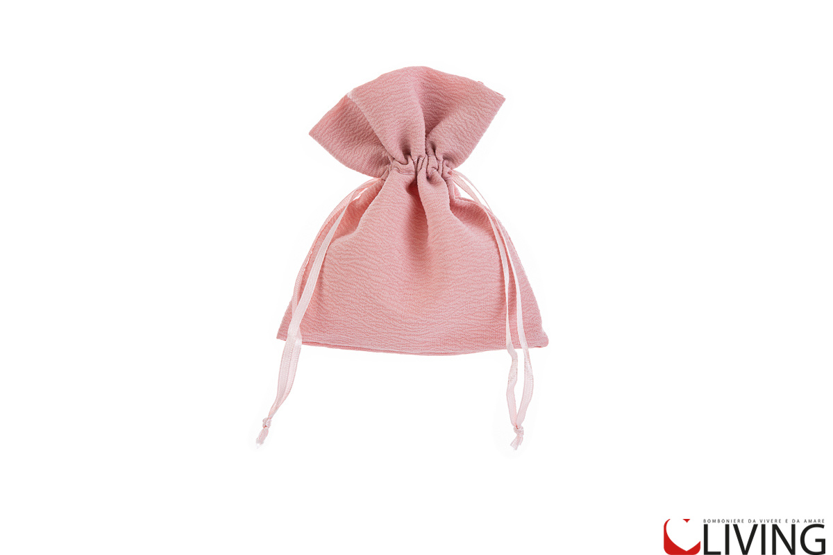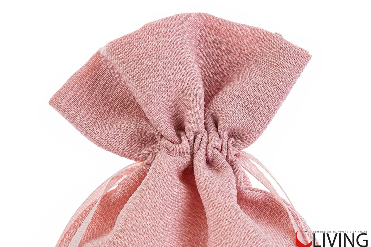 Il sacchetto è dotato di un pratico nastrino tirante, anch’esso rosa, che permette di chiuderlo facilmente e in modo sicuro, garantendo che i confetti rimangano ben custoditi all’interno. Il design semplice e pulito del sacchetto lo rende adatto a qualsiasi tema o decorazione, consentendoti di personalizzarlo ulteriormente con etichette, ciondoli o nastri colorati.