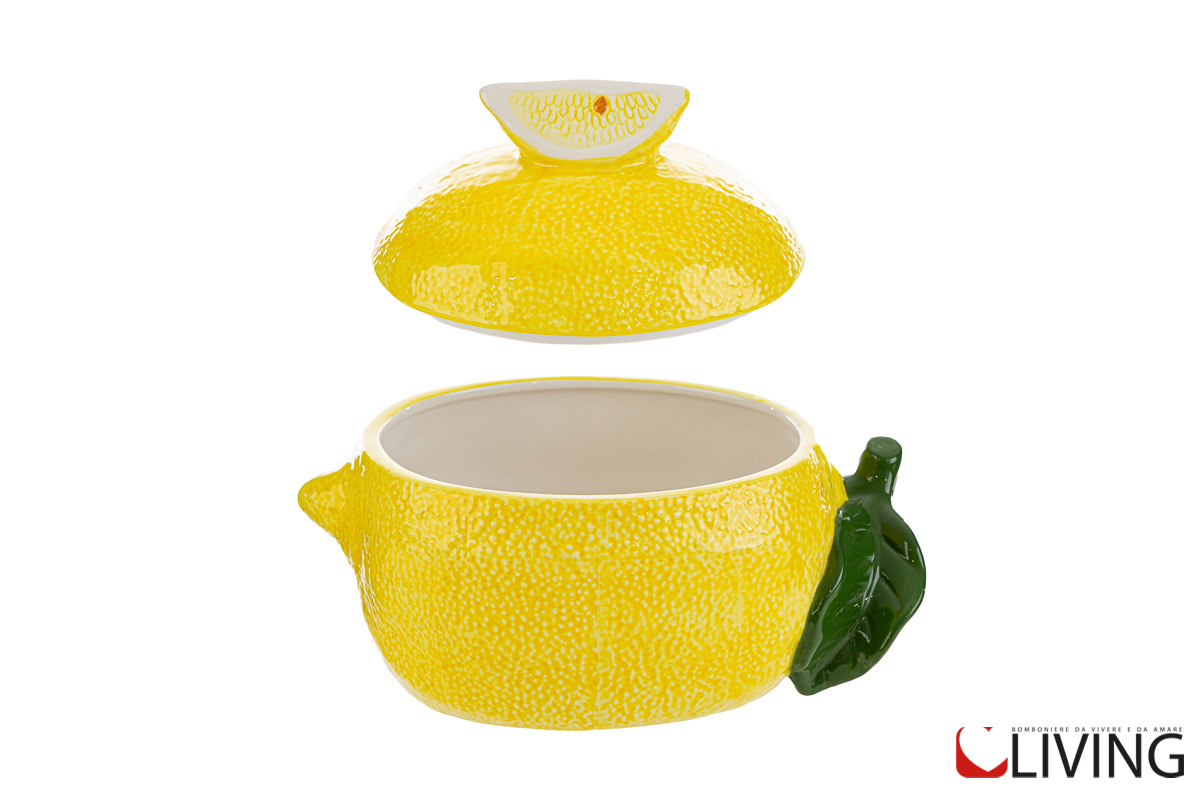 La scatola ceramica giallo limone darà sicuramente un tocco di colore e allegria a qualsiasi spazio in cui verrà posizionata, e il suo design divertente e unico sarà sicuramente un punto focale di conversazione.