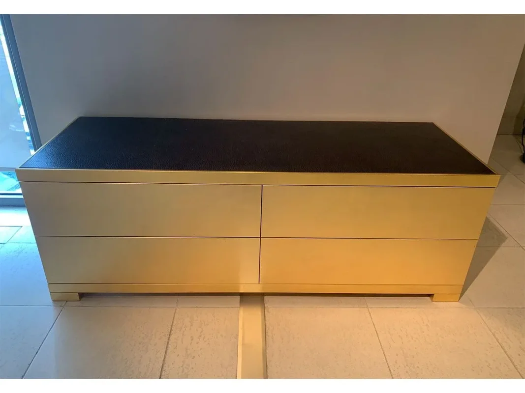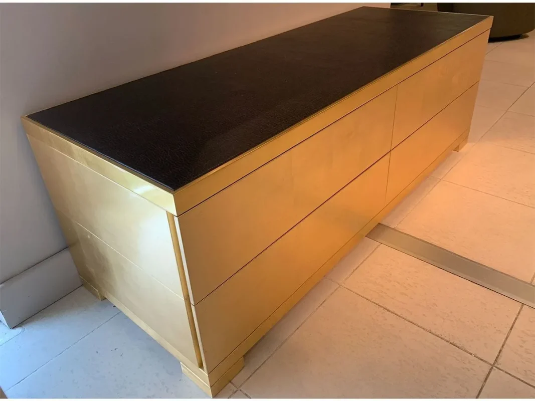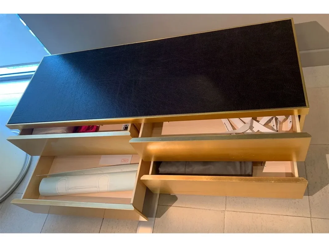 Set comò e 2 comodini in legno con foglia oro – Axil