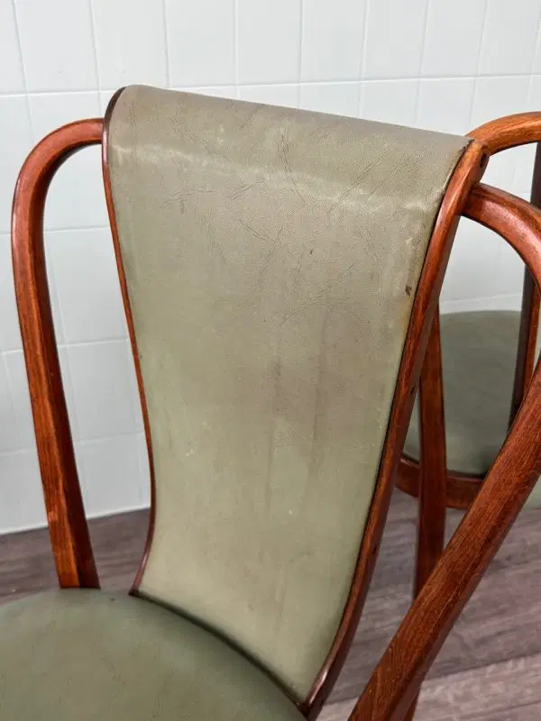 La tappezzeria presenta diversi segni di scolorimento e parti scure quindi le sedute sono da ritapezzare e da rifare l’imbottitura.