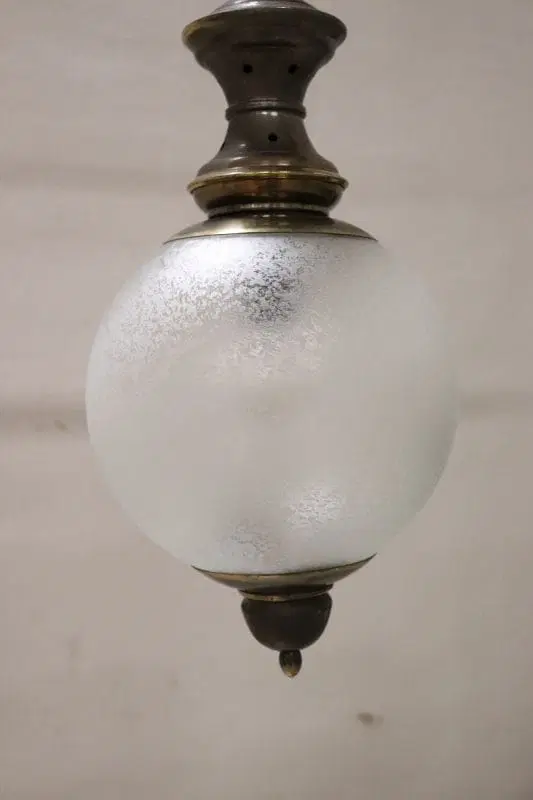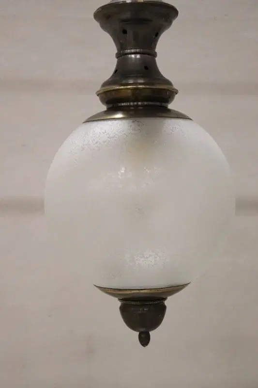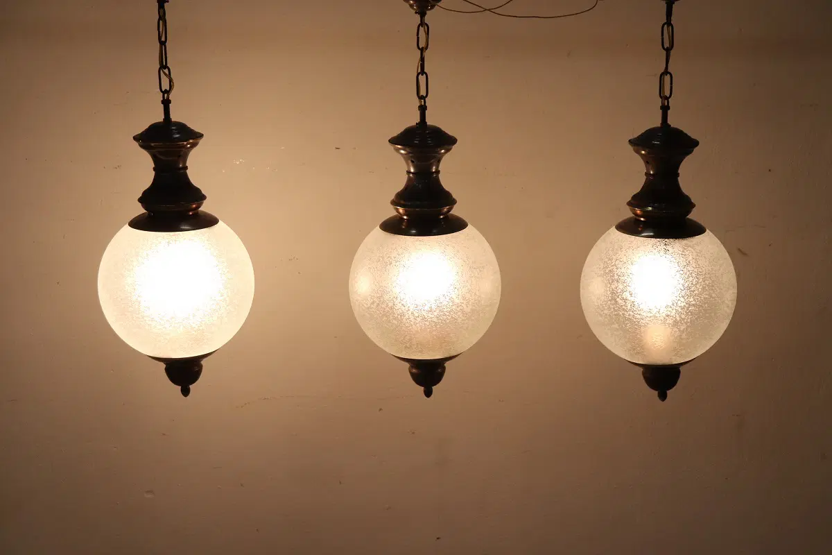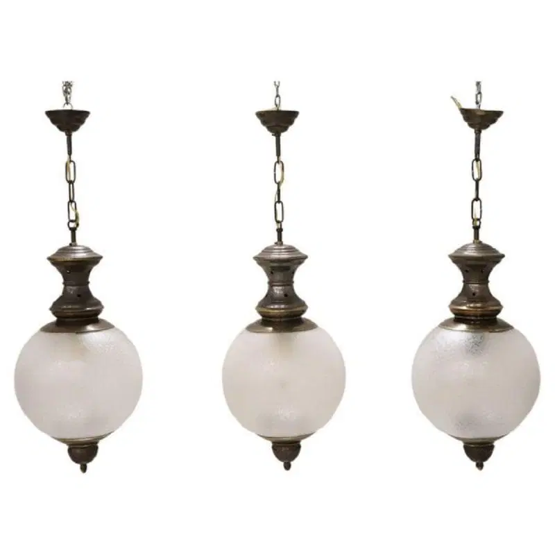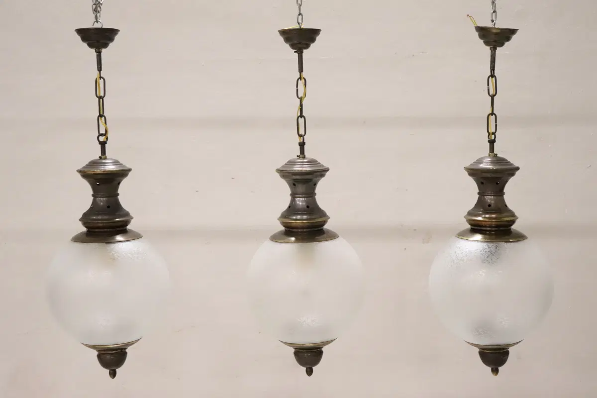 Siamo lieti di presentare questo squisito set di tre lampade a sospensione, realizzato in Italia intorno al 1960. Queste lampade sono caratterizzate da una splendida struttura in ottone patinato abbinata a eleganti coppe di vetro. Sono dotate di una lampadina ciascuna. Sebbene non presentino marchi o firme identificabili, la qualità dei materiali e il design suggeriscono un’attribuzione alle rinomate opere di Luigi Caccia Dominioni per Azucena. L’artigianalità e il fascino estetico sono evidenti e ne fanno un set di spicco in qualsiasi collezione. Le lampade sono in perfette condizioni e sono state ricablate per garantire sicurezza e funzionalità. Sono ideali per essere collocate in un lungo corridoio, in un ampio ingresso o in qualsiasi stanza che richieda uno stile di illuminazione coeso. Queste lampade a sospensione saranno una splendida aggiunta al vostro arredamento moderno, infondendo alla vostra casa l’eleganza senza tempo del design italiano di metà secolo.