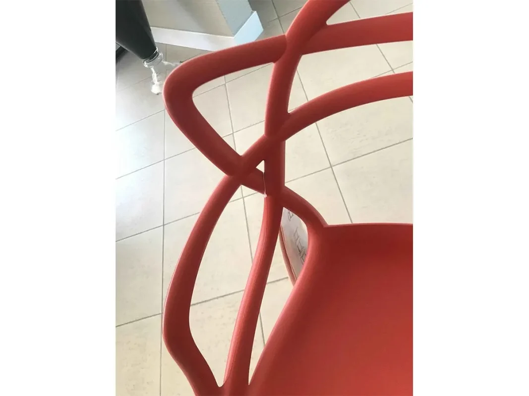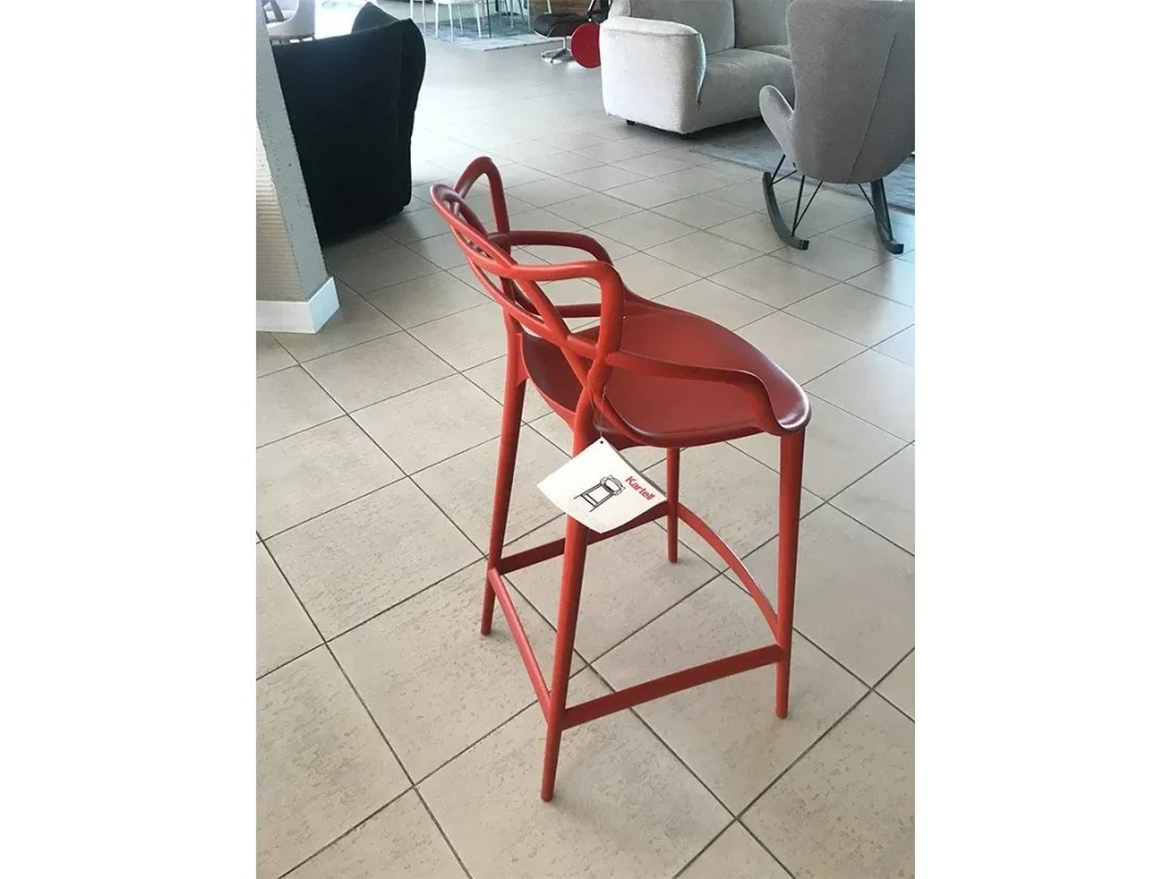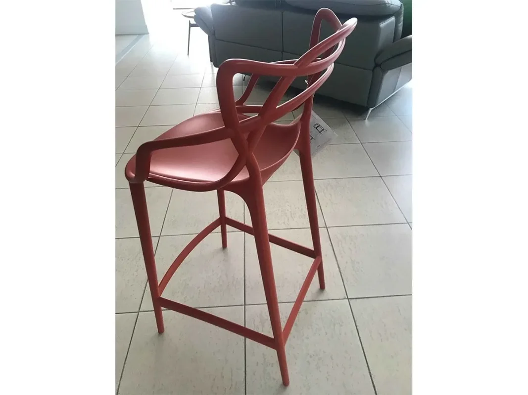 Sgabello Masters con l’iinconfondibile segno grafico della struttura,dato dall’intreccio delle silhouette di tre iconiche linee. Ideale sia per la casa che per ambienti professionali. Lo sgabello Masters vive perfettamente anche in esterno. Il colore come foto è definito da Kartell “arancio ruggine”.