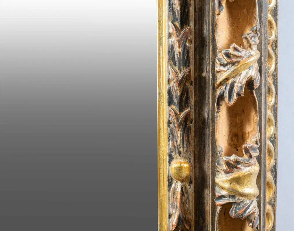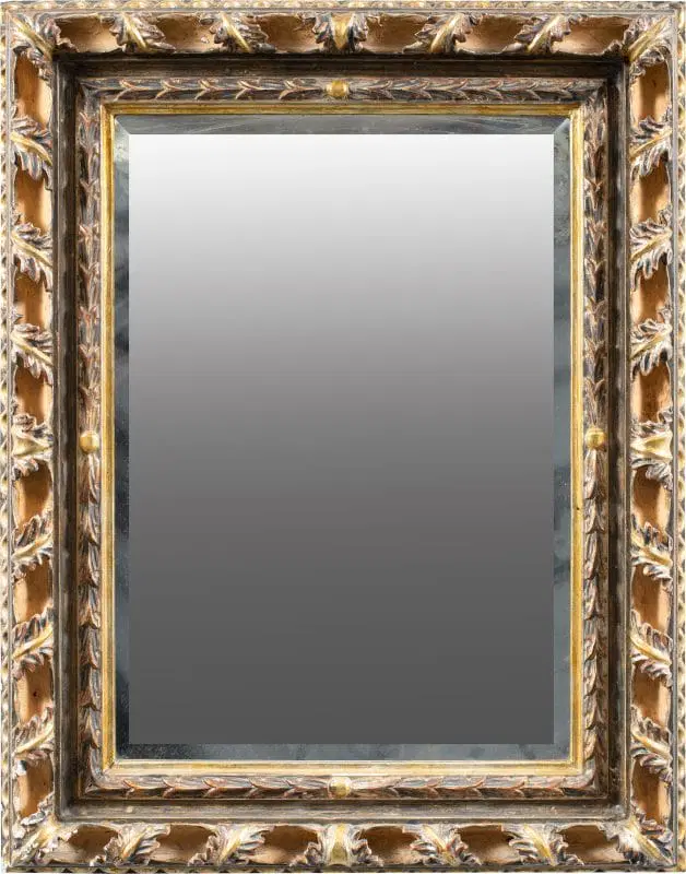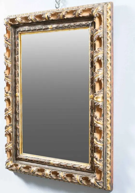 Specchiera Liberty in legno intagliato e dorato. Italia, XX secolo.