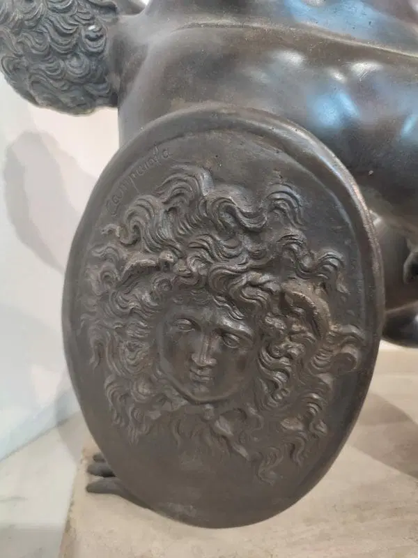 Statua gladiatore in bronzo con base in travertino fine 800 Romana. 45x23x54cm peso 8kg