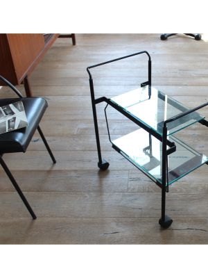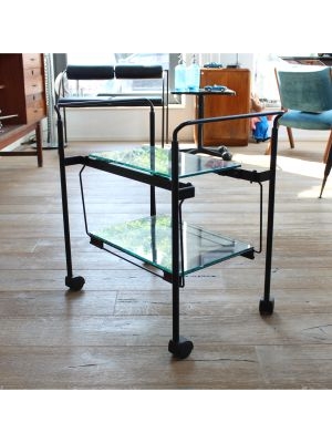 Designer: Lluis Clotet e Oscar Tusquets Blanca / Produttore: Zanotta / / Direttamente dalla fervente creatività degli anni 80, questo carrellino porta con sé leleganza ironica del design postmoderno. Progettato da Lluis Clotet e Oscar Tusquets Blanca per Zanotta nel 1988, è un piccolo capolavoro di architettura domestica, pensato per muoversi con leggerezza tra un aperitivo e una lettura notturna.