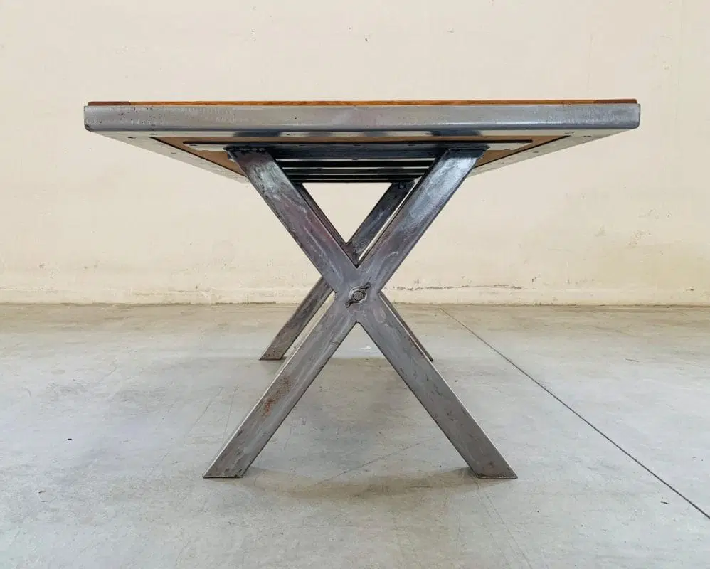 Ulteriori informazioni sull’articolo Tavolo con piano di legno teak con struttura in ferro grezzo stile industrial