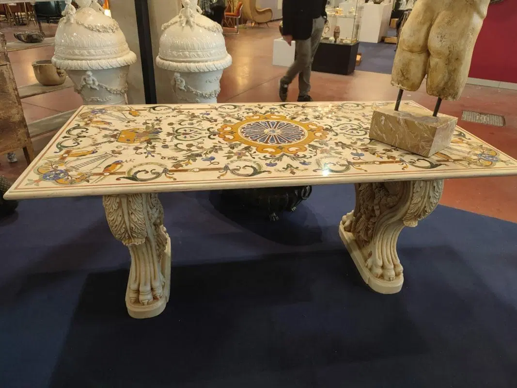 Tavolo in marmo intarsiato con basi in marmo greco thassos primi 800. 183x91x74cm prezzo 12000€ primi 800. 183x91x74cm