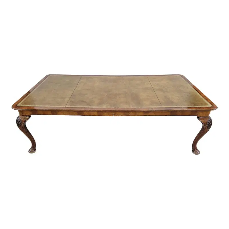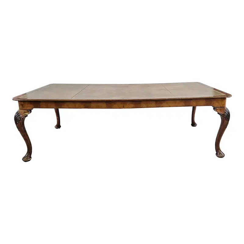 Tavolo rettangolare in noce con piano in pelle