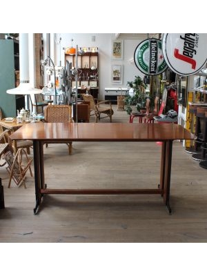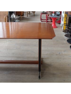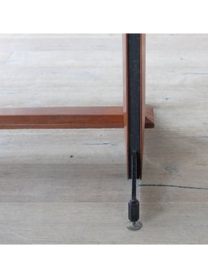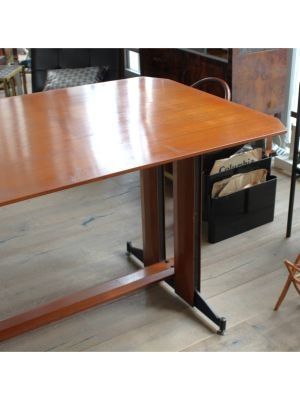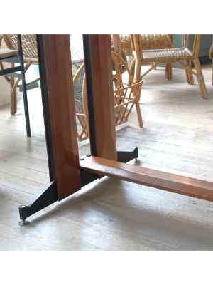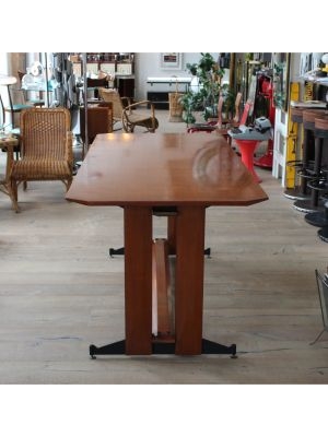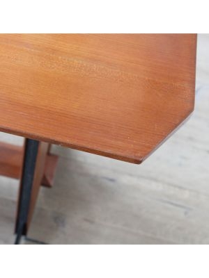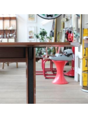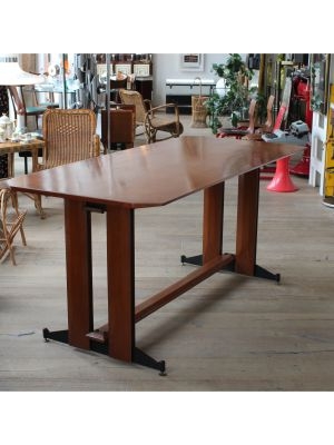 Produttore: La Permanente Mobili Cantù / / Un gentiluomo razionalista, elegante senza ostentazione, funzionale senza rinunciare al fascino. Questo tavolo da pranzo, progettato nellItalia della fine anni 50, nasce da una sintesi perfetta tra rigore formale e calore materico: la struttura unisce con maestria la forza del ferro e la nobiltà del teak, in un gioco di contrasti armoniosi. I piedini regolabili sembrano ancorarsi al terreno con determinazione, saldi come radici ben piantate, pronti a sostenere conversazioni, brindisi e silenzi.