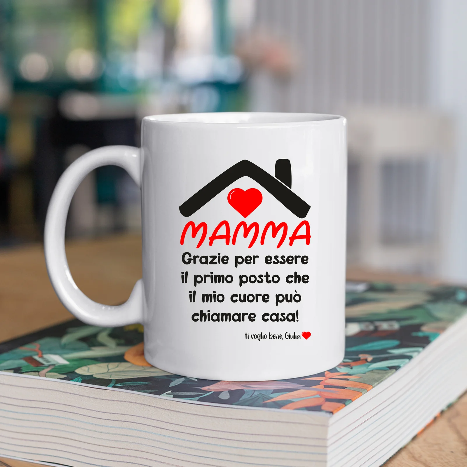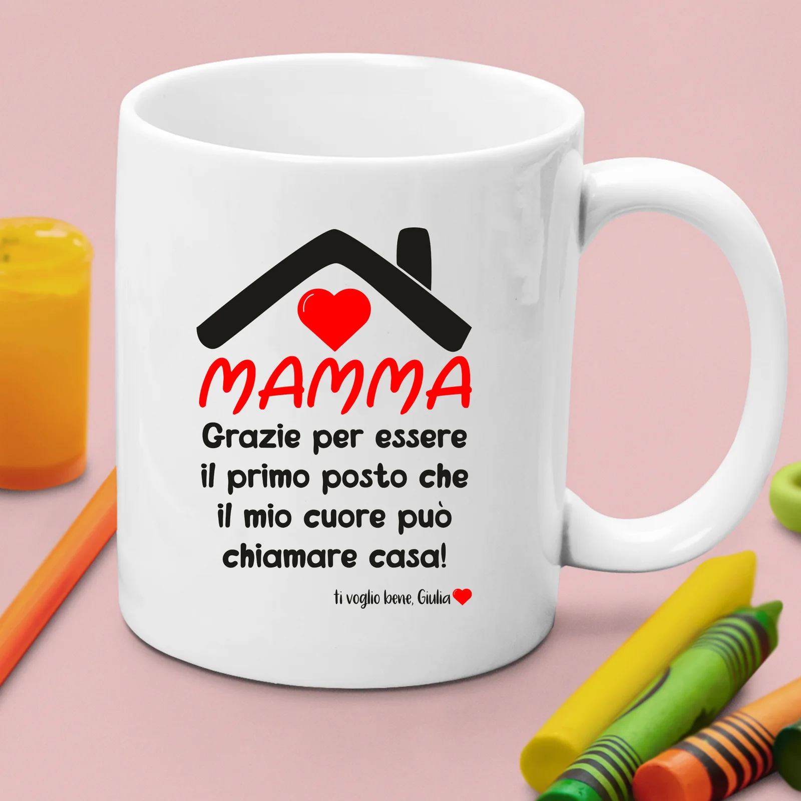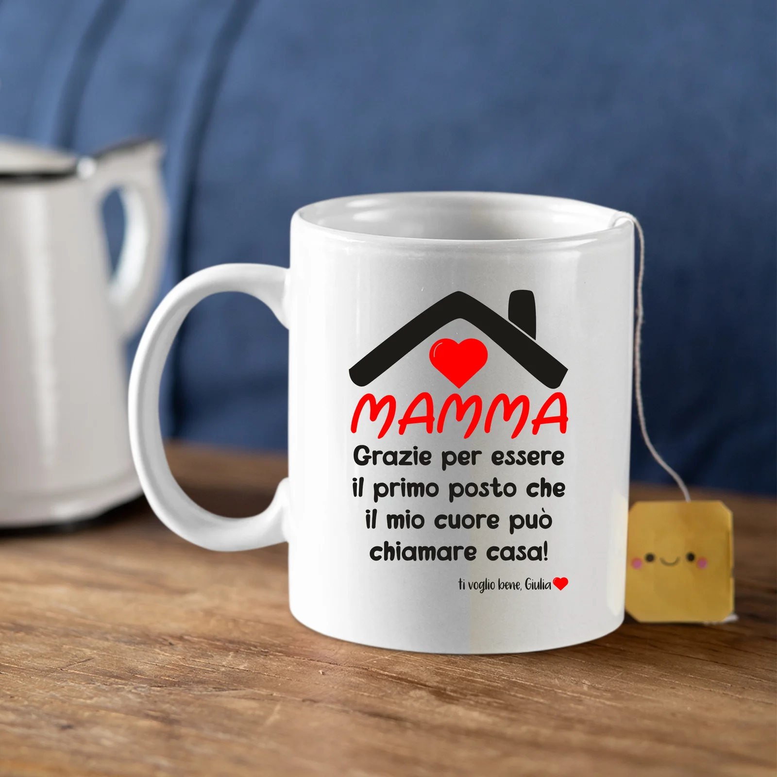 Tazza Mamma PERSONALIZZABILE Festa della Mamma Grazie per essere il primo posto che il mio cuore può chiamare casa Mug 11OZ Idea Regalo Mamma