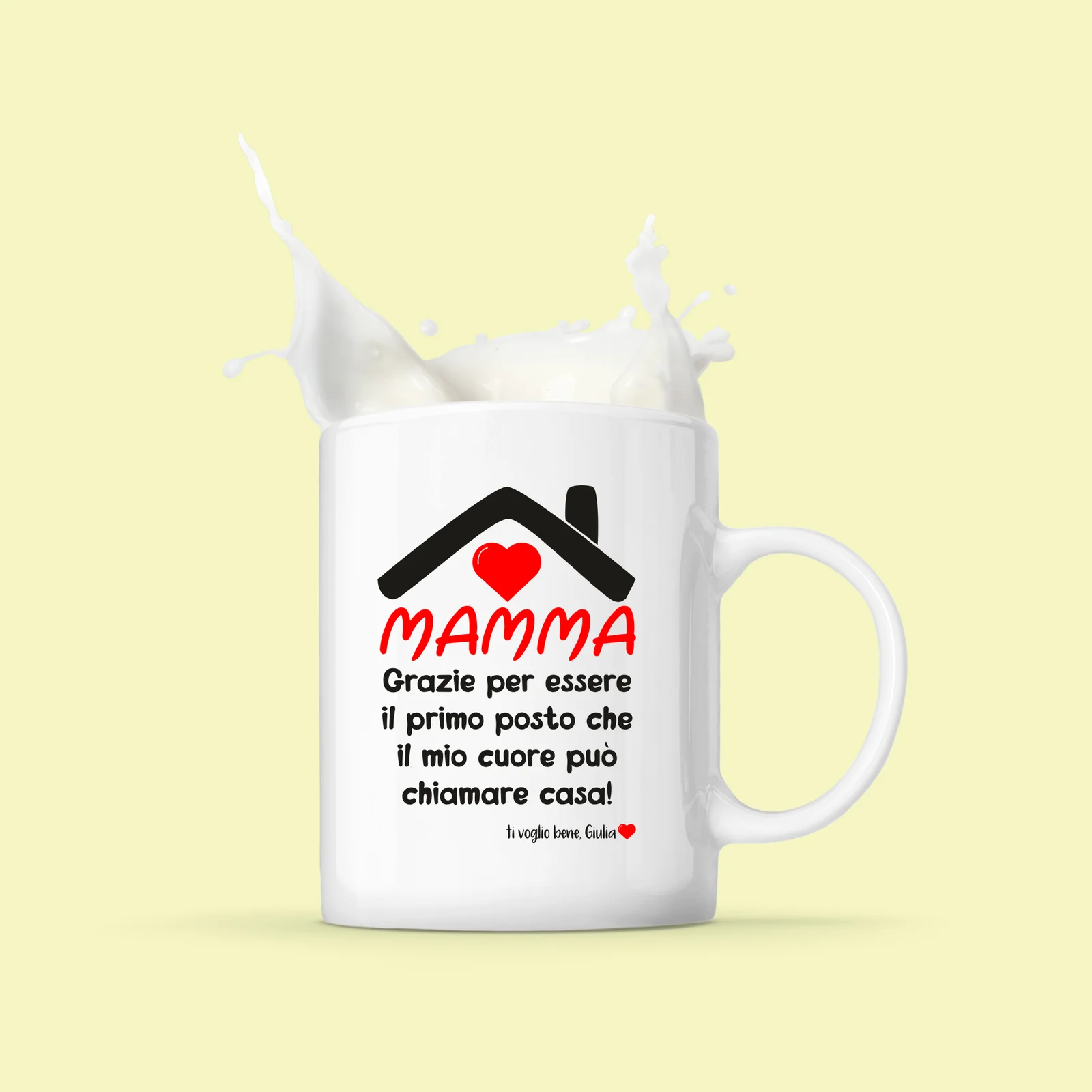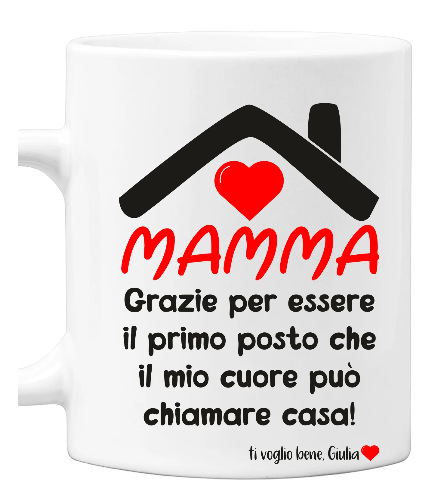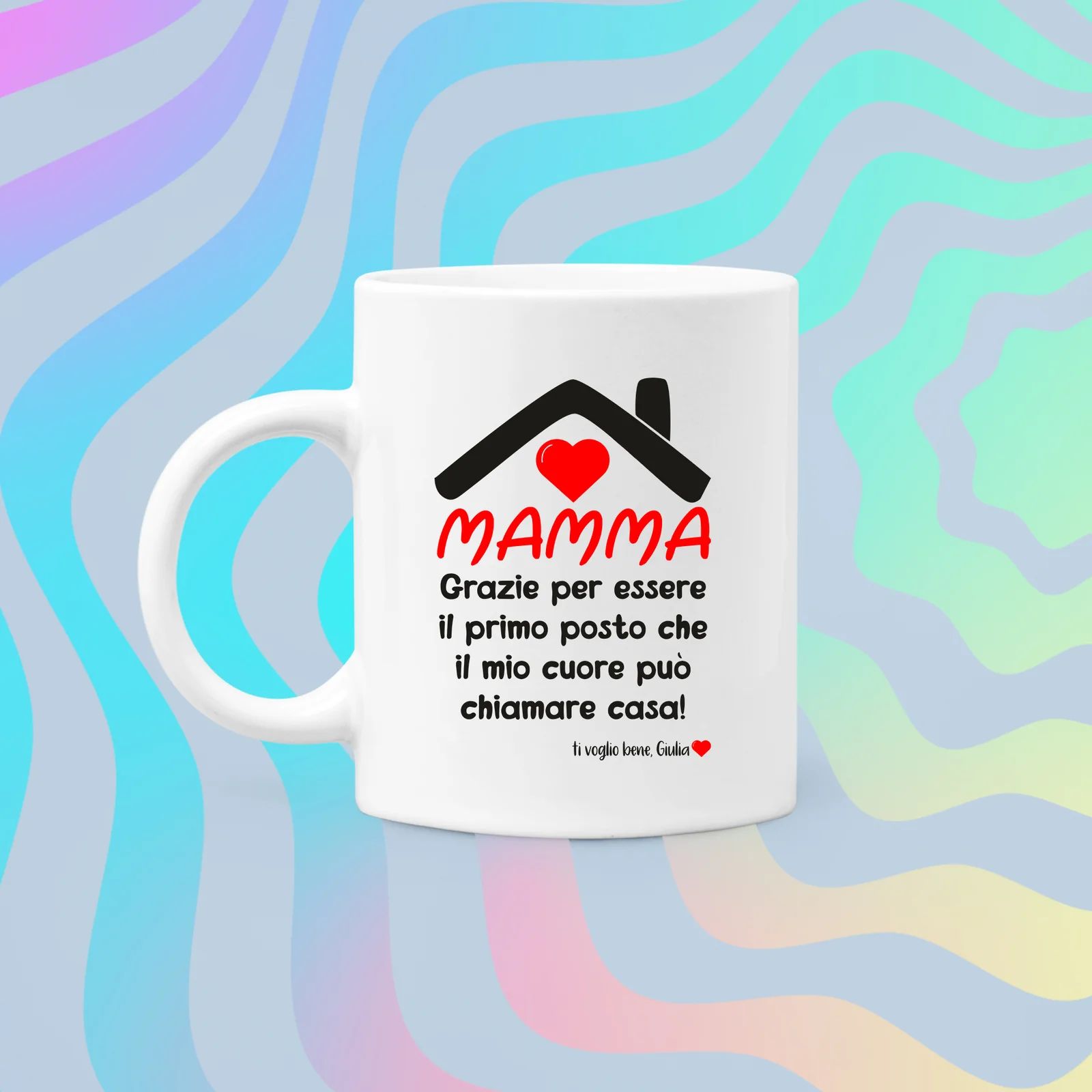 Tazza Mamma PERSONALIZZABILE Festa della Mamma Grazie per essere il primo posto che il mio cuore può chiamare casa Mug 11OZ Idea Regalo Mamma