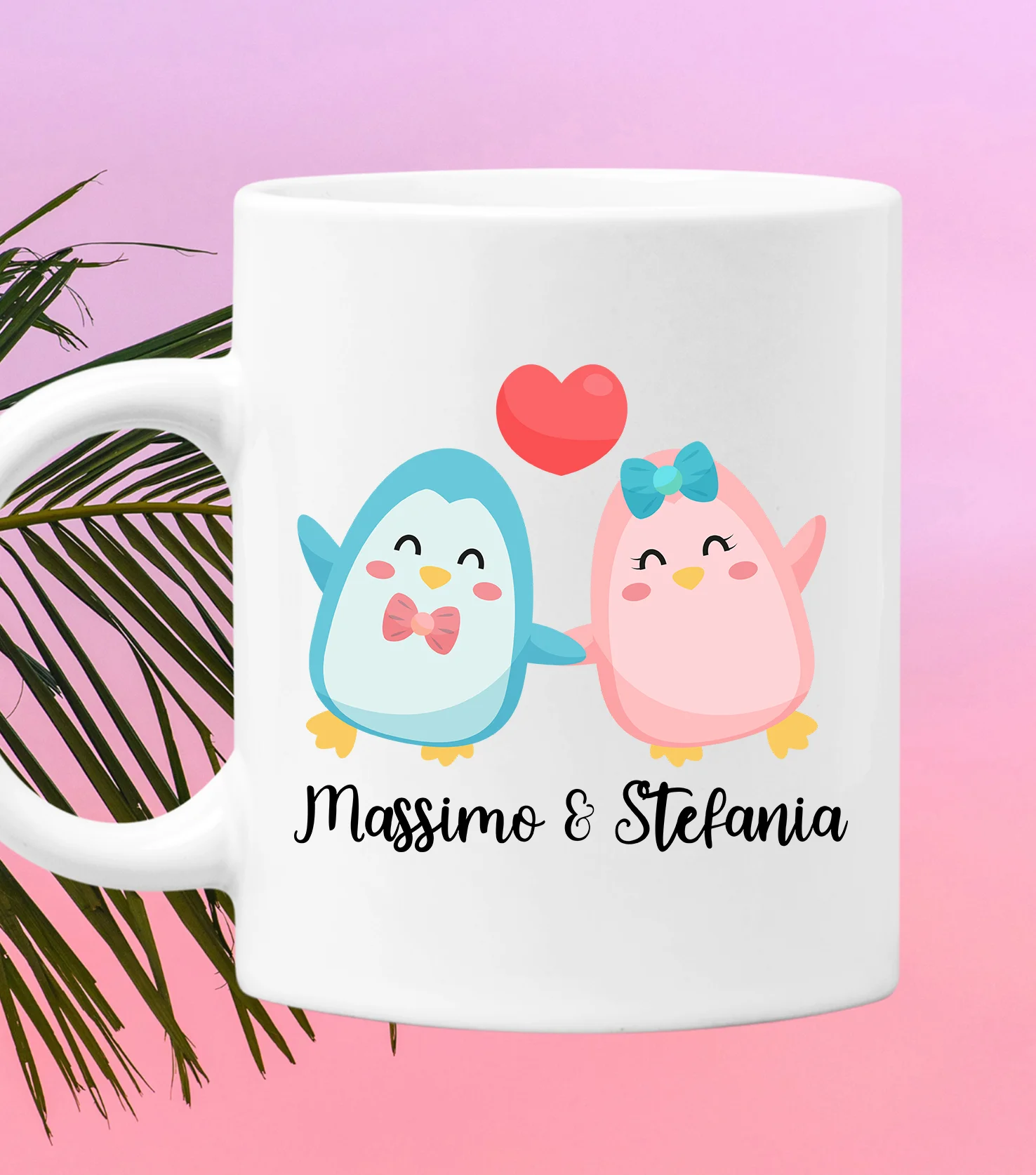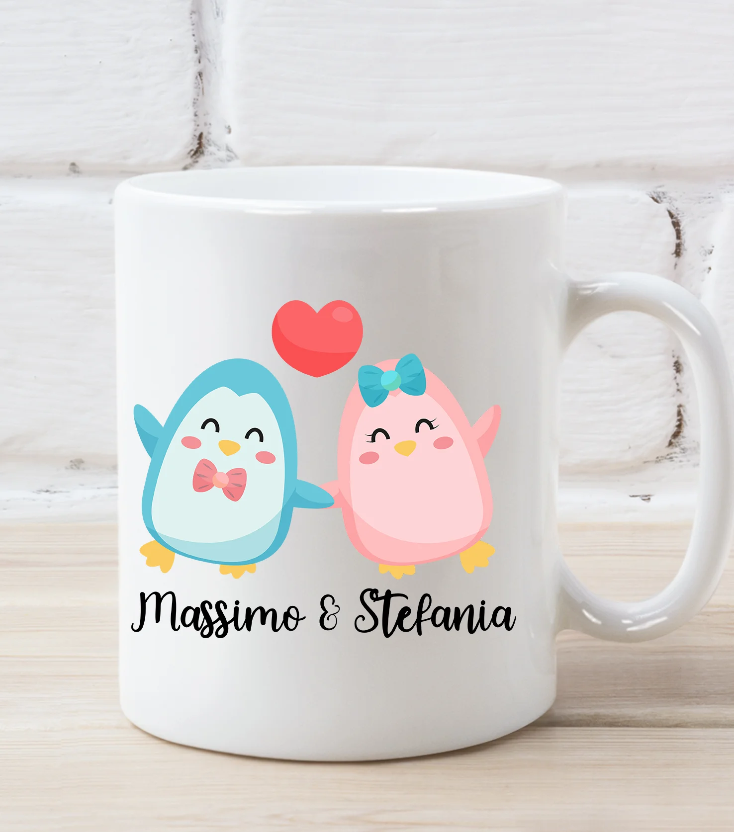 Tazza SanValentino Personalizzabile Pinguini personalizzabile con nome Love Innamorati Mug 11oz idea regalo